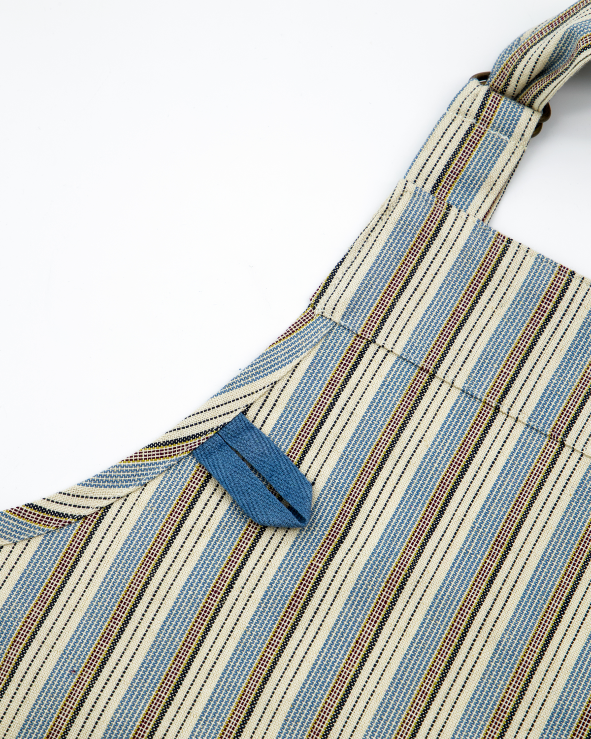 Het House Doctor Cook keukenschort brengt functionaliteit en stijl samen in één tijdloos ontwerp. Het schort is gemaakt van 100% katoen en heeft een blauw/zandkleurig streeppatroon dat je keukenlook een frisse, klassieke uitstraling geeft. Dankzij de verstelbare halsband en het praktische voorvak is dit schort ideaal voor alles: van gezellige bakmomenten tot zomerse barbecues.