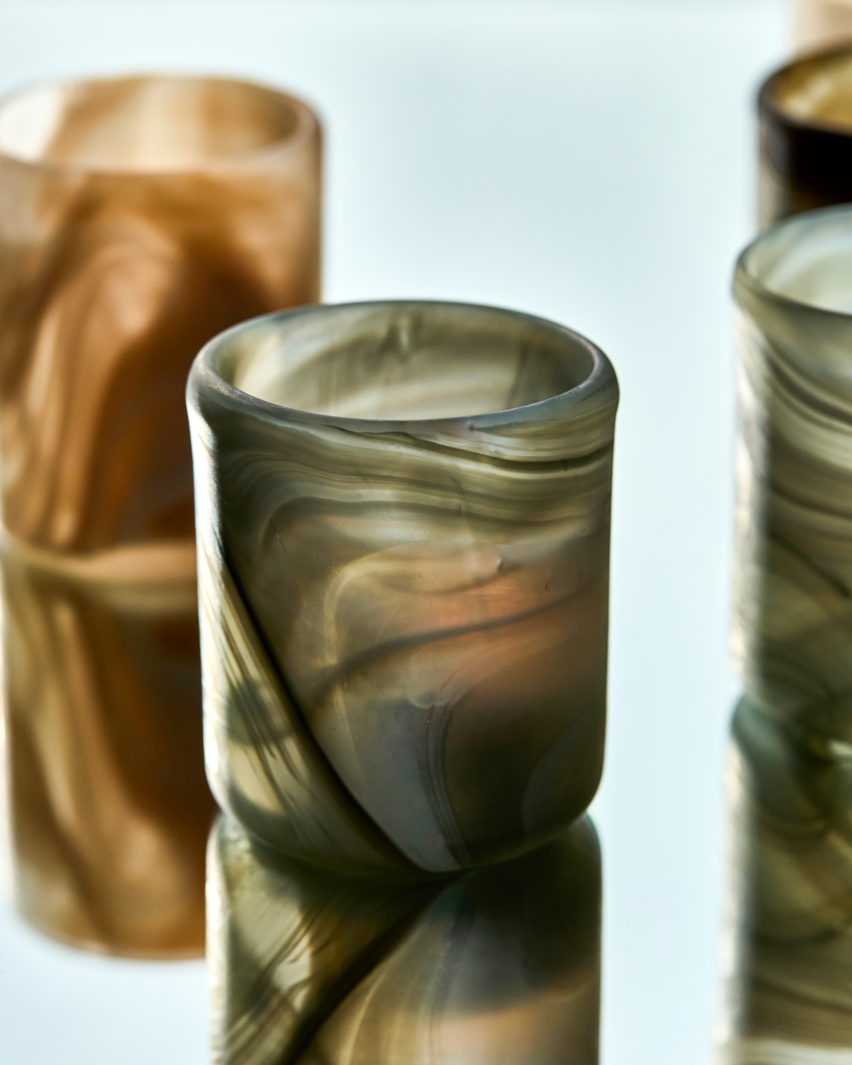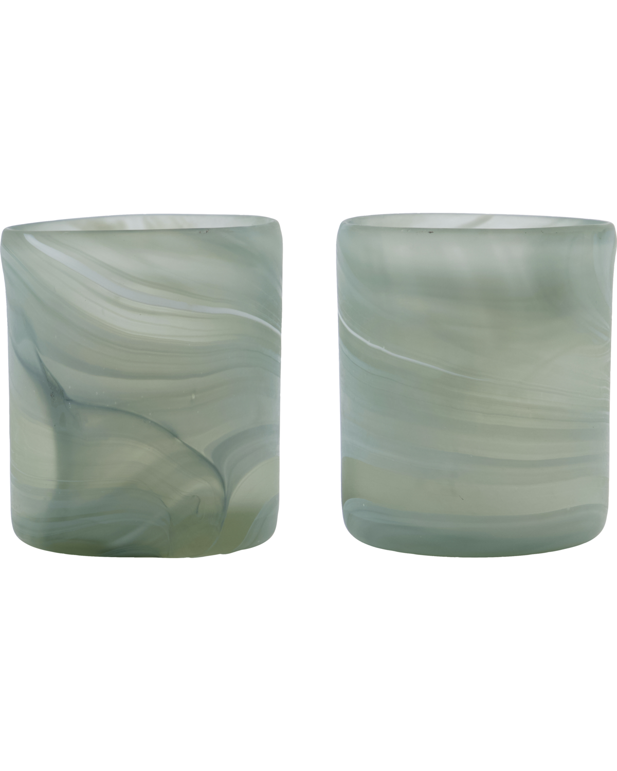 De House Doctor Kae theelichthouders in grijs zijn mondgeblazen en hebben een uniek gemarmerd patroon. Set van 2 voor een warme, sfeervolle gloed. Lees meer