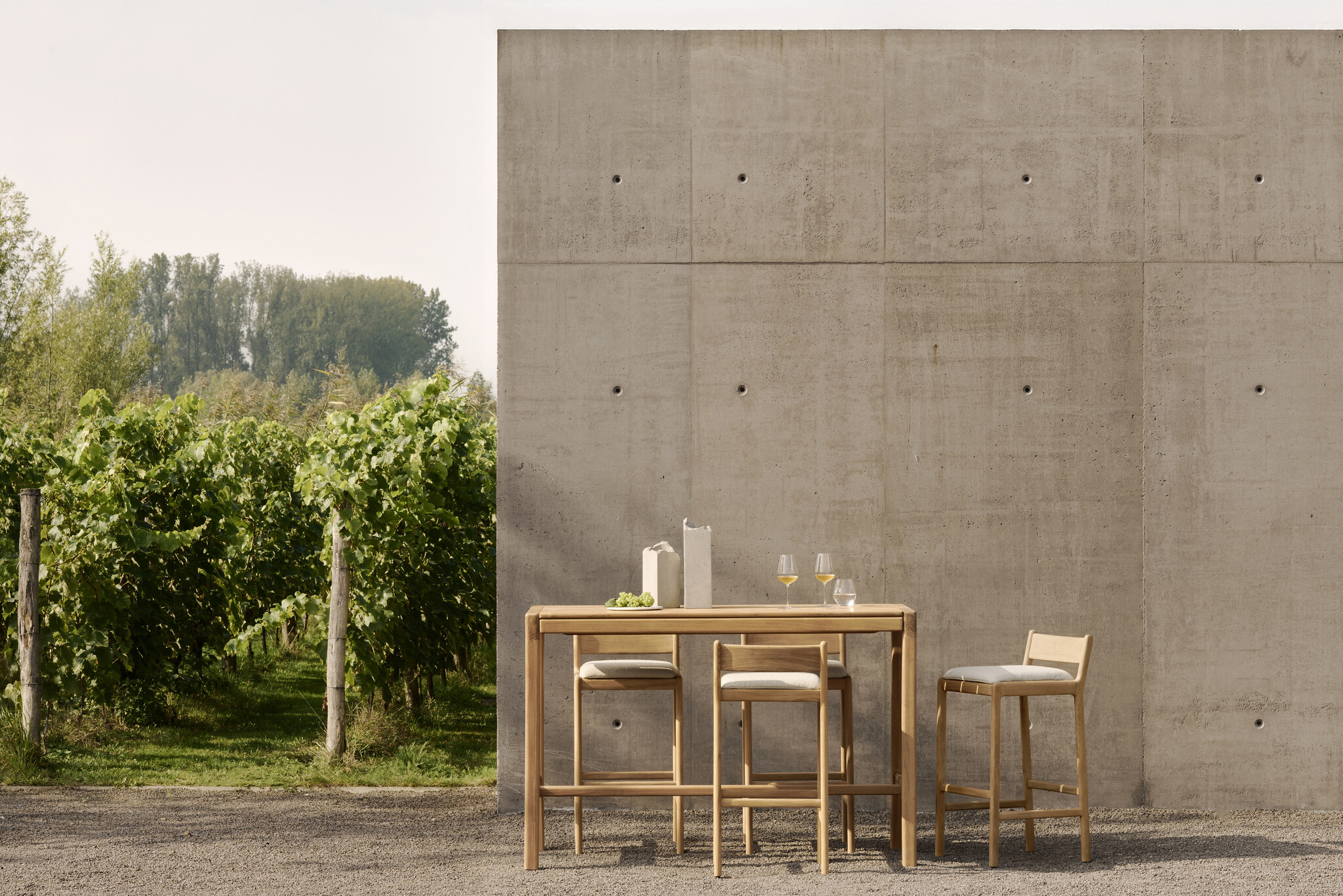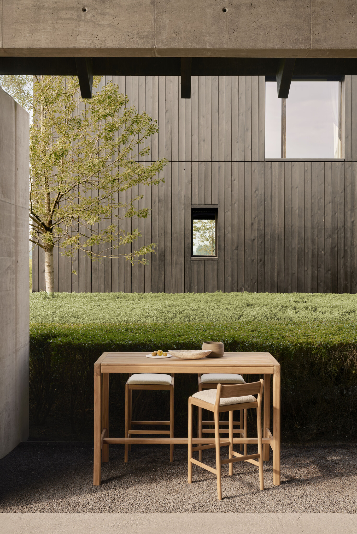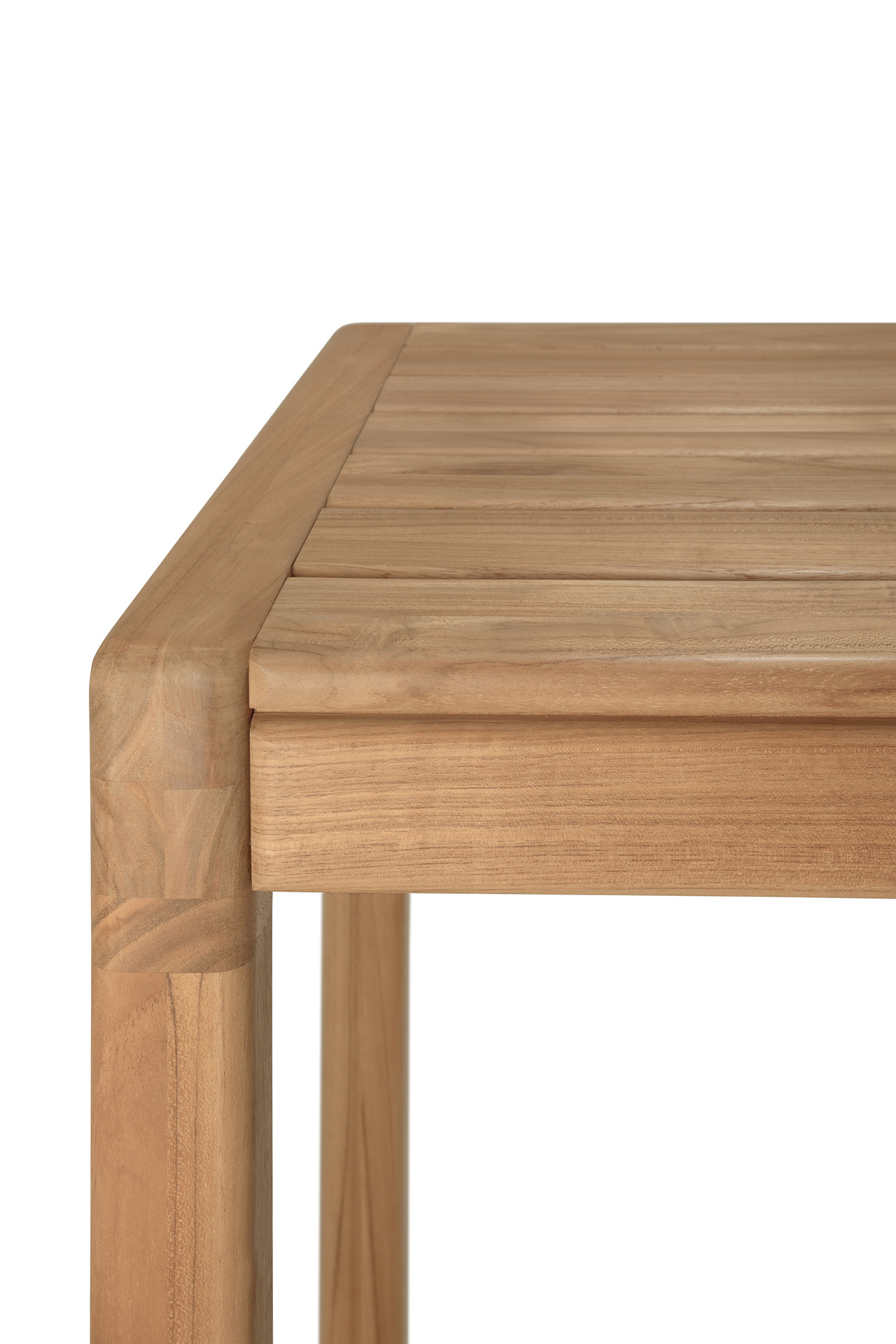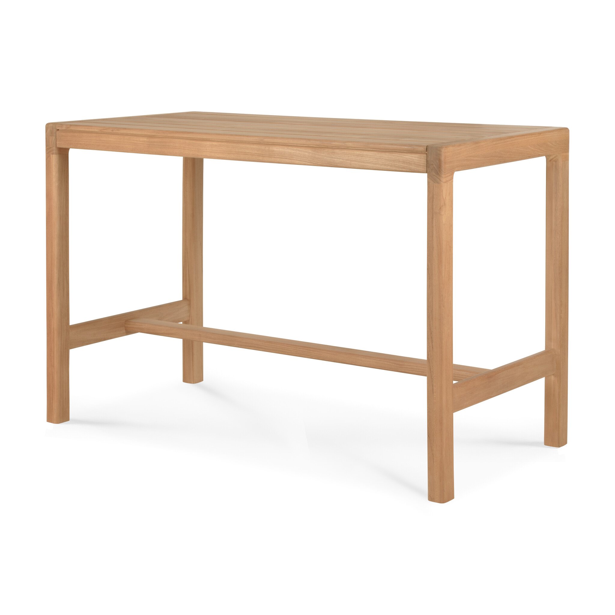 Het rechthoekige blad in natural teakhout biedt ruim plaats voor apero, koffie of een geïmproviseerde buitenlunch. Met een hoogte van 105 cm zit je net wat hoger, ideaal in combinatie met de bijpassende Jack krukken. Zo maak je van een terras of poolhouse een plek waar je vanzelf wat langer blijft hangen.