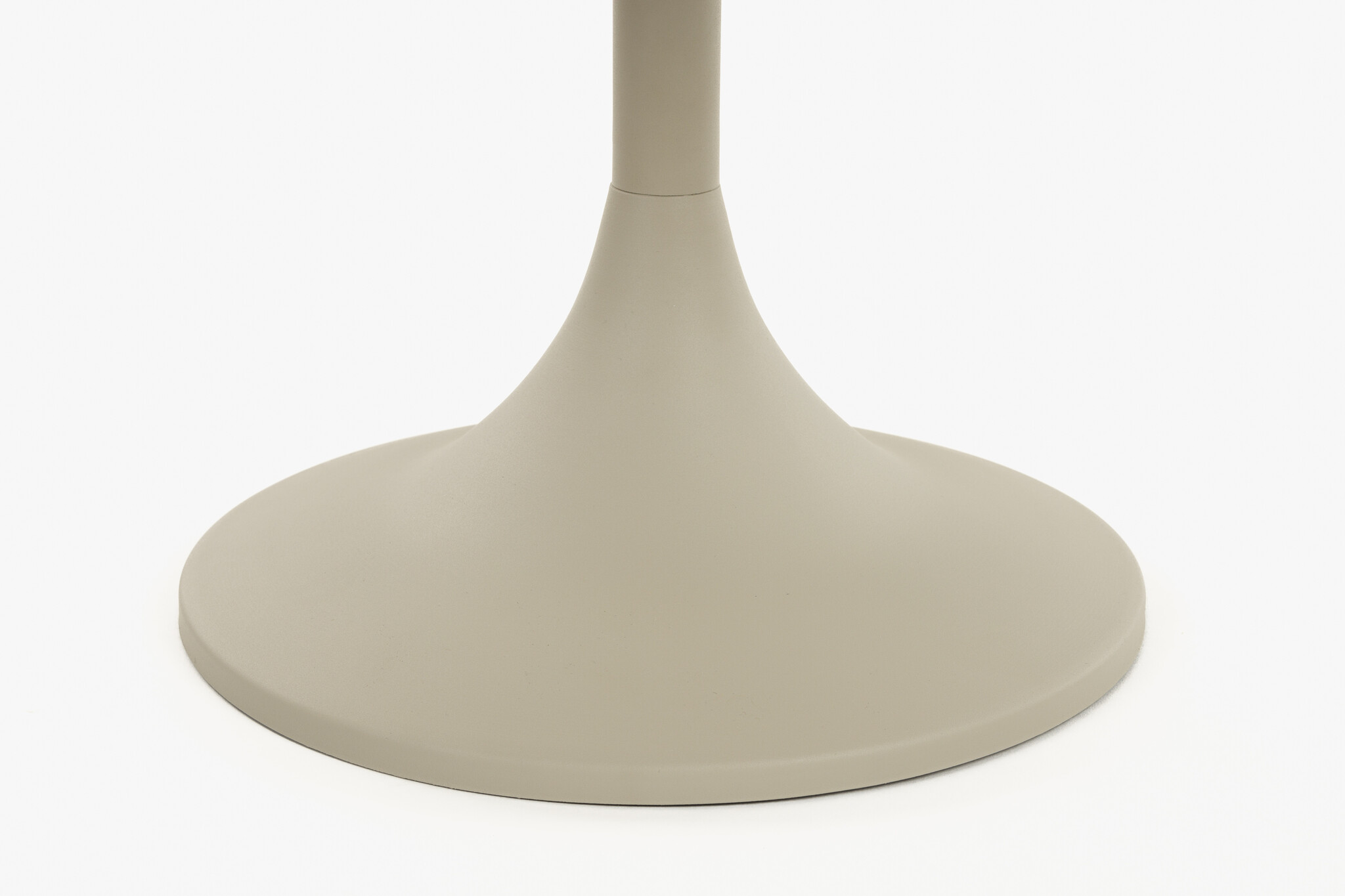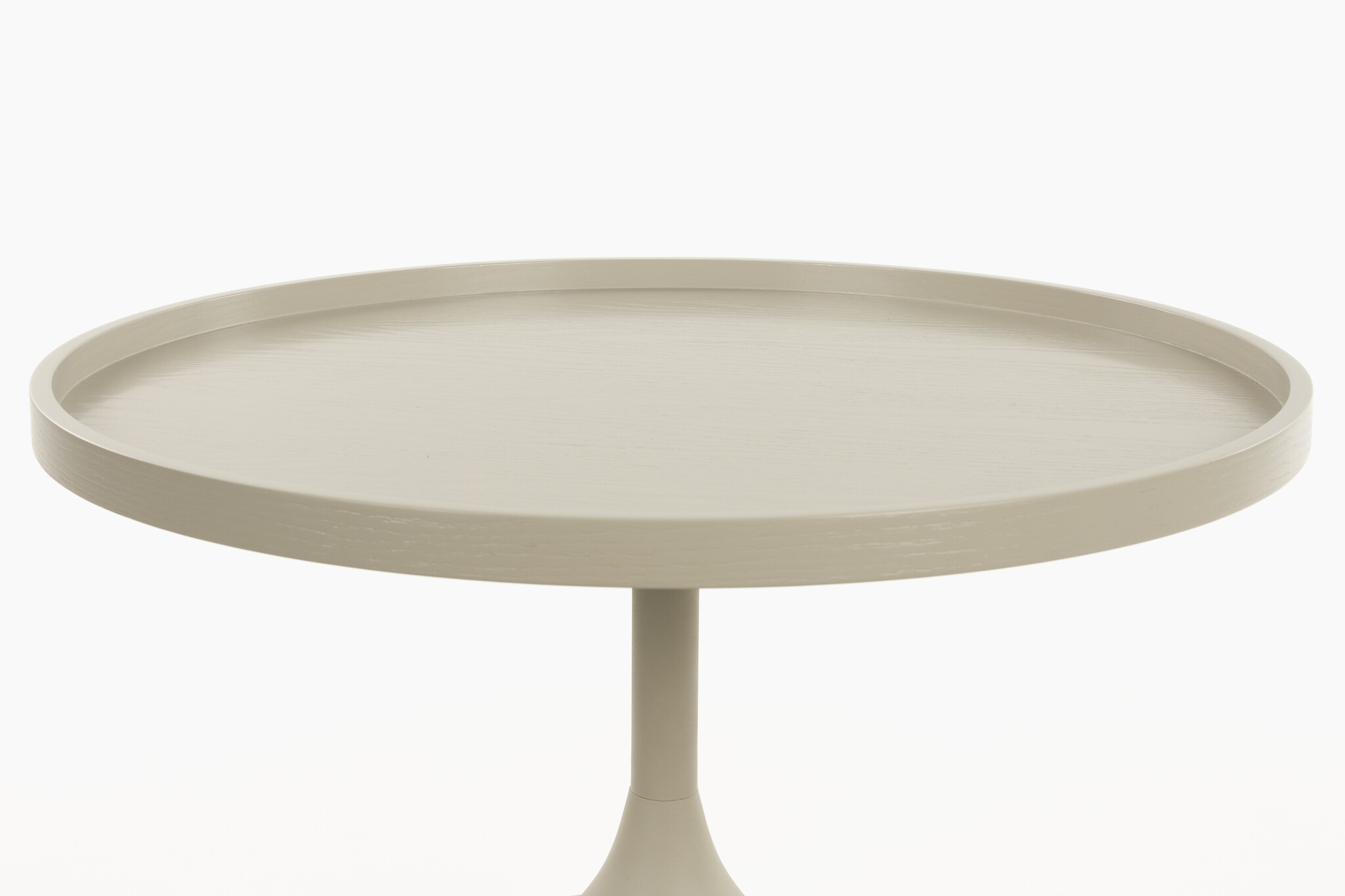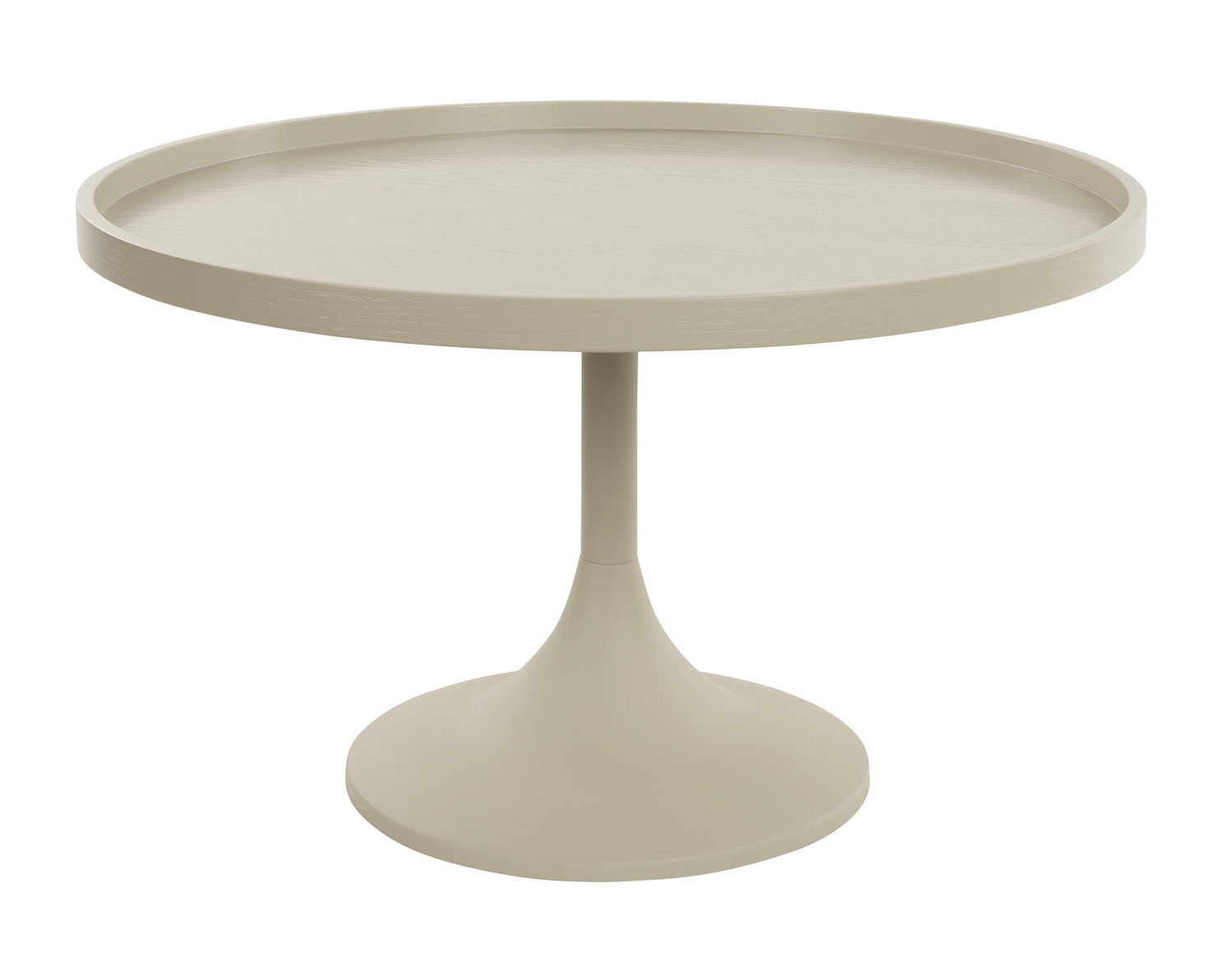 De Zuiver Jason salontafel in beige is het soort meubel dat in stilte indruk maakt. De tafel brengt gepoedercoat metaal en eikenfineer samen in exact dezelfde kleur, wat zorgt voor een haast sculpturaal effect. Het ronde ontwerp straalt zachtheid uit, terwijl het structuurverschil tussen blad en onderstel net voldoende spanning toevoegt. Of je nu houdt van minimalistisch wonen of je een statement wilt maken met eenvoud: Jason voelt zich overal thuis.