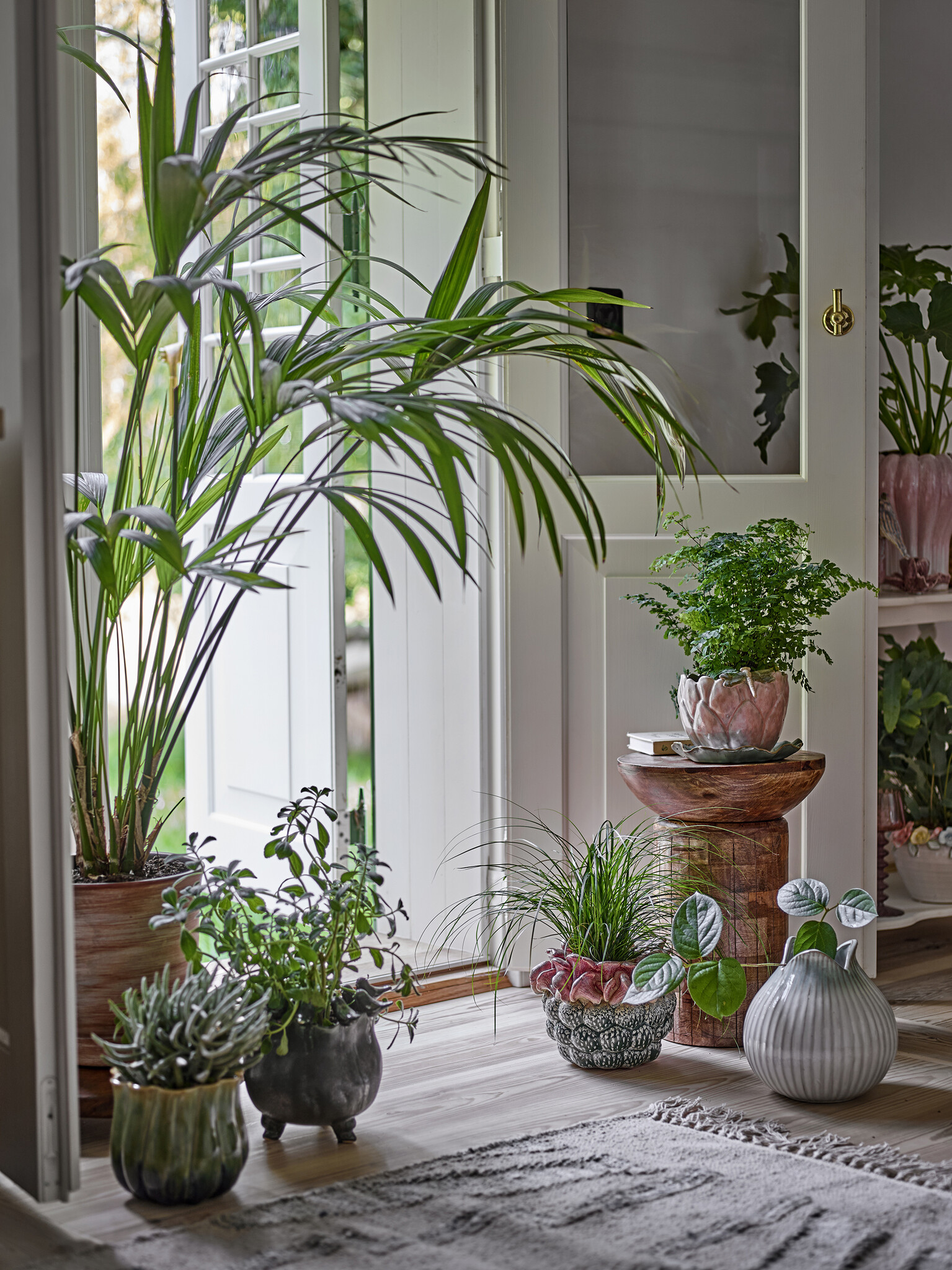 Dankzij de natuurlijke tinten past Jenner mooi bij groene planten en aardse materialen zoals hout en linnen. Ze voelt zich thuis op een dressoir, vensterbank of open plank en voegt daar een subtiel decoratief accent toe — zelfs zonder plant.
