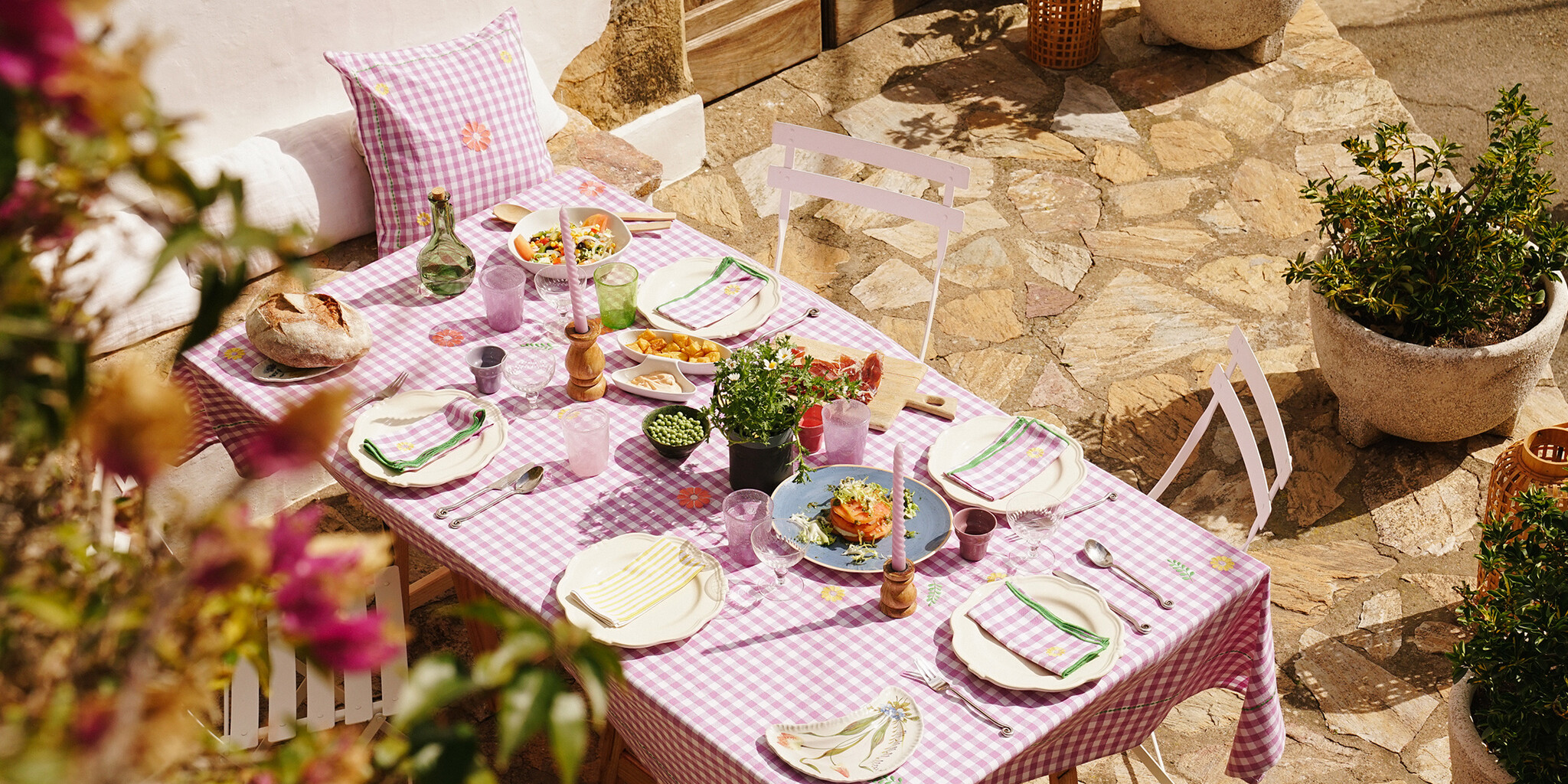 Dit geborduurde vichy-tafelkleed van Maison Dînette voegt charme en elegantie toe aan elke eettafel. De zachte violette kleur brengt een subtiele vrolijkheid, perfect voor zowel alledaagse momenten als speciale gelegenheden. Het royale formaat maakt het geschikt voor lange tafels, binnen of buiten, en zorgt direct voor een sfeervol gedekte tafel.