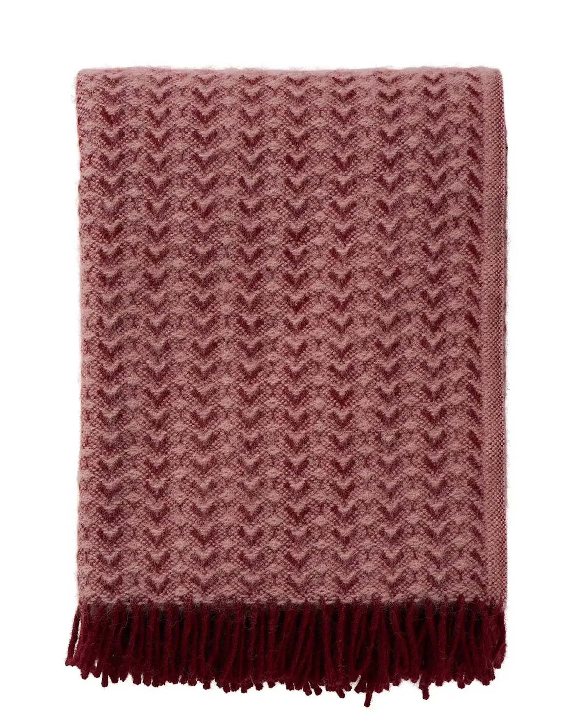 De Ilse plaid roest/roze van Klippan ademt Scandinavische rust en harmonie. Het subtiele ruitpatroon, geïnspireerd op de warme tinten van herfstbladeren, combineert harmonieus bordeauxrood en roze. Het resultaat is een plaid dat tegelijk subtiel én opvallend is.