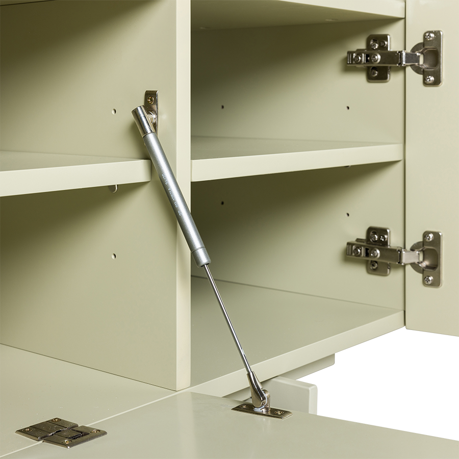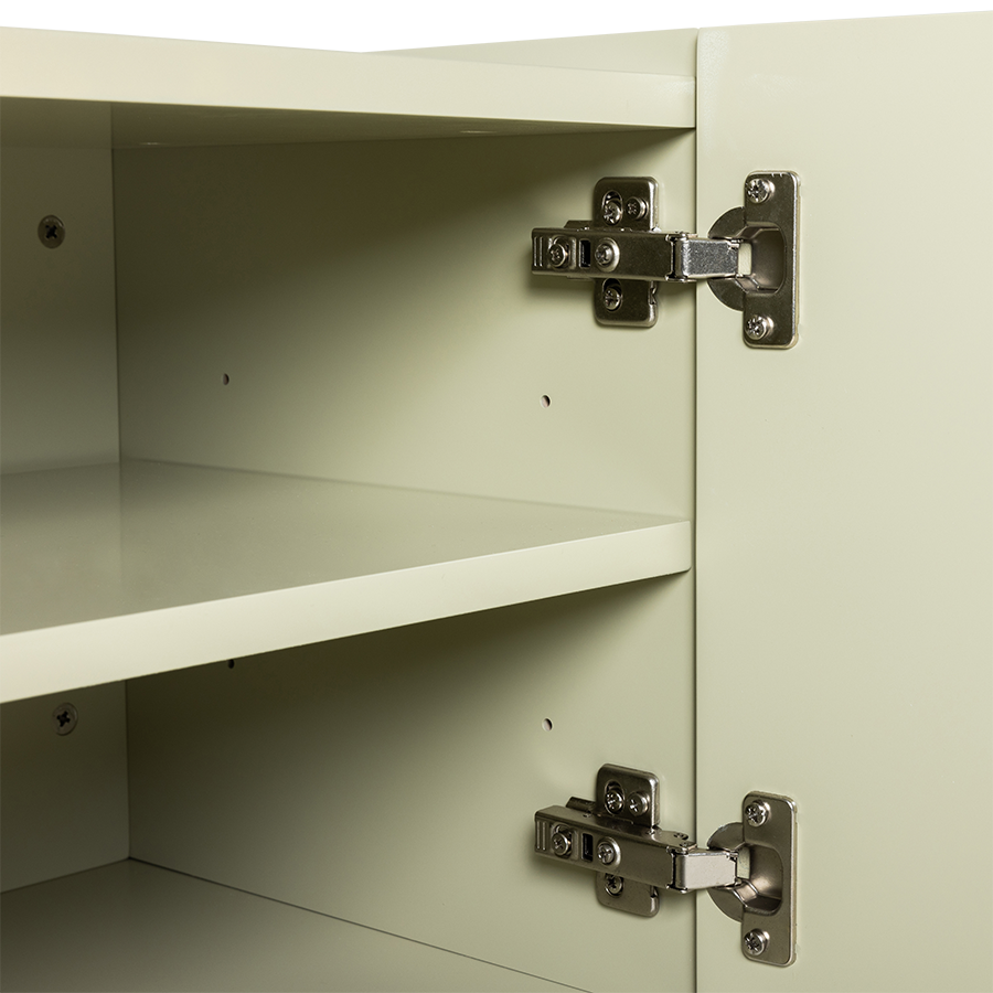 | Materiaal | Deze kast is gemaakt van MDF in combinatie met metaal. De afwerking zorgt voor een strak, egaal oppervlak met een moderne uitstraling. |