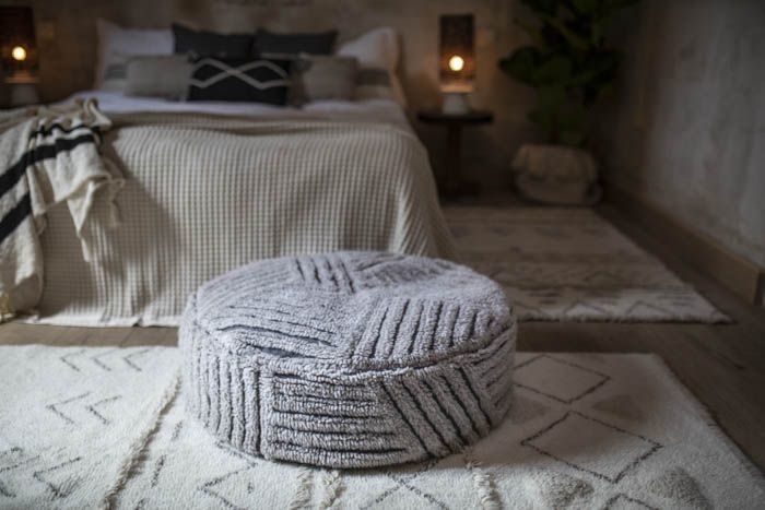 Lorena Canals benadrukt de natuurlijke schoonheid die wol biedt door het zorgvuldig selecteren van zachte kleuren. Ze voegt kleine details toe zoals de met de hand geknoopte franjes. Het resultaat heeft dan ook een bohemian uitstraling, ideaal als extra toets voor je woning.