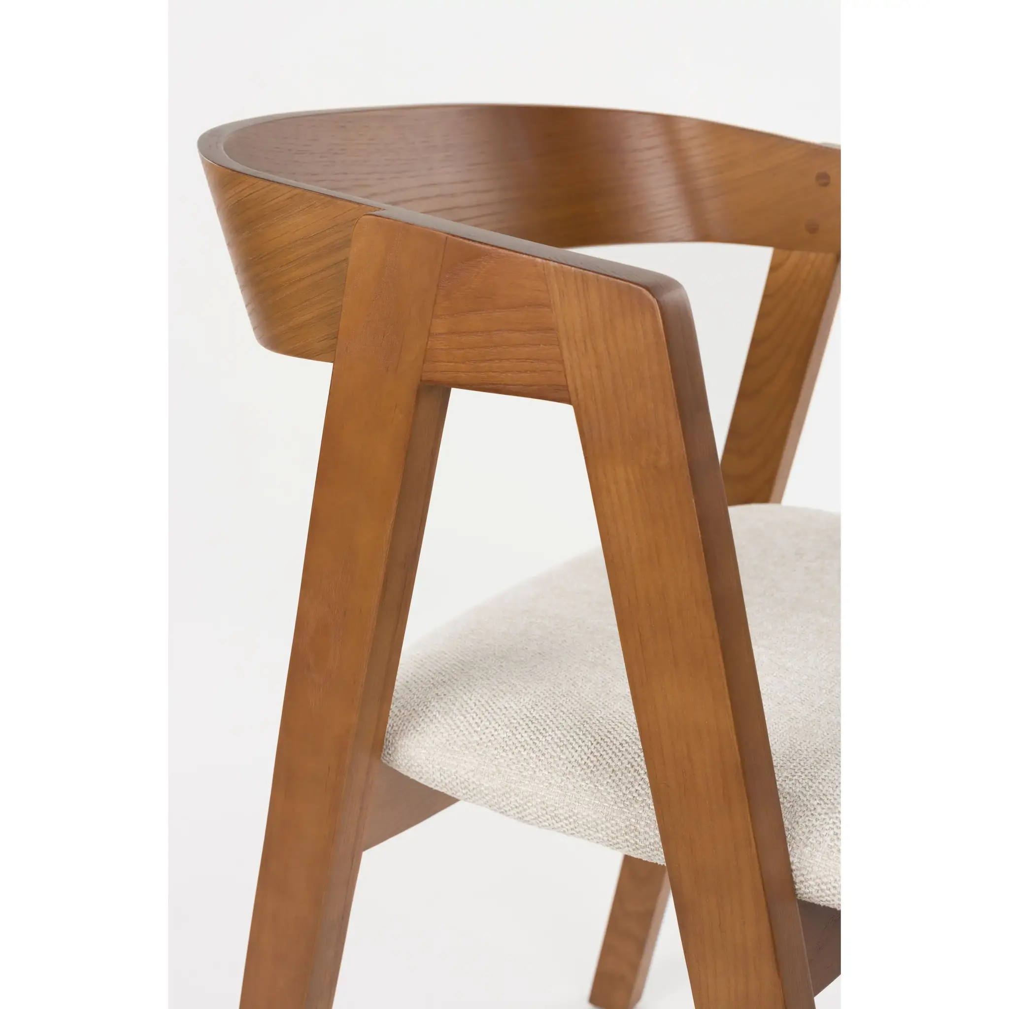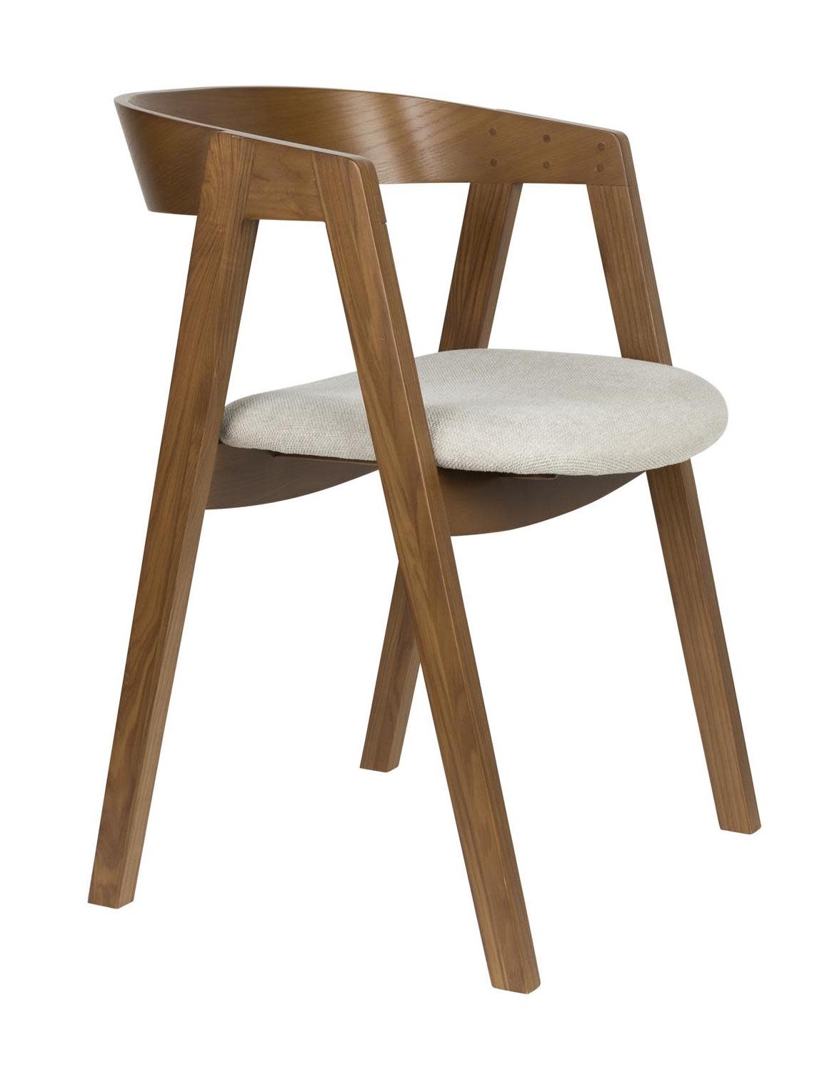 Materiaal | Deze stoel is vervaardigd uit massief essenhout met essenhoutfineer in walnootkleur, en heeft een zitting bekleed met grof geweven polyesterstof. |