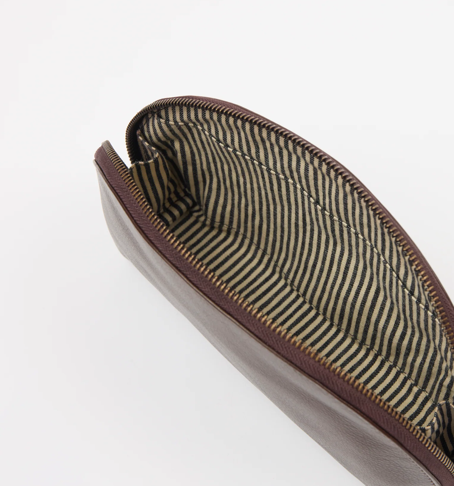 In een luxueuze chocoladebruine tint is deze medium make-up case een stijlvolle basic voor thuis en onderweg. Het boterzachte soft grain leder voelt aangenaam aan en geeft de case een rustige, verfijnde uitstraling. Dankzij de slimme vorm is ze compact van buiten, maar verrassend ruim van binnen.