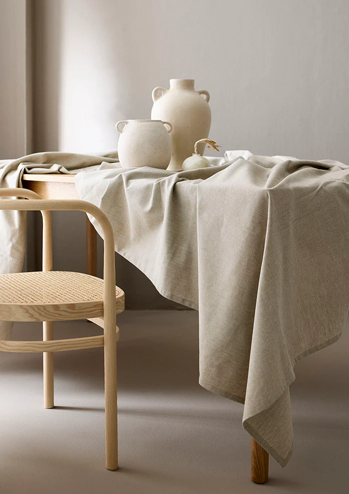 Met het Bungalow Milan Desert tafelkleed geef je elke tafel moeiteloos een rustige en verfijnde uitstraling. Dit royale katoenen tafelkleed in zachte zandkleur past bij vrijwel elke tafelschikking, van een intiem familiediner tot een feestelijke gelegenheid of zomerse lunch in de tuin. Het tijdloze, effen design zorgt ervoor dat servies en accessoires volledig tot hun recht komen, zonder af te leiden. Gemaakt van 100% katoen, voelt de stof natuurlijk en stevig aan. Subtiele details en hoogwaardige afwerking maken het tafelkleed niet alleen praktisch, maar ook een stijlvolle toevoeging aan je interieur.