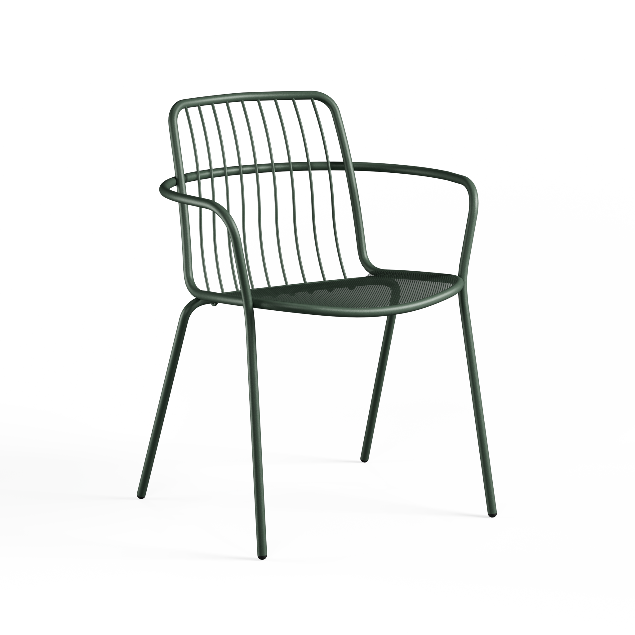 De Emu Alisea tuinstoel met armleuningen in dark green is een stapelbare outdoor armchair in staal met ademende stalen mesh zitting en luchtige rug in metalen spijlen, ontworpen door Alessandro Stabile. Lees meer