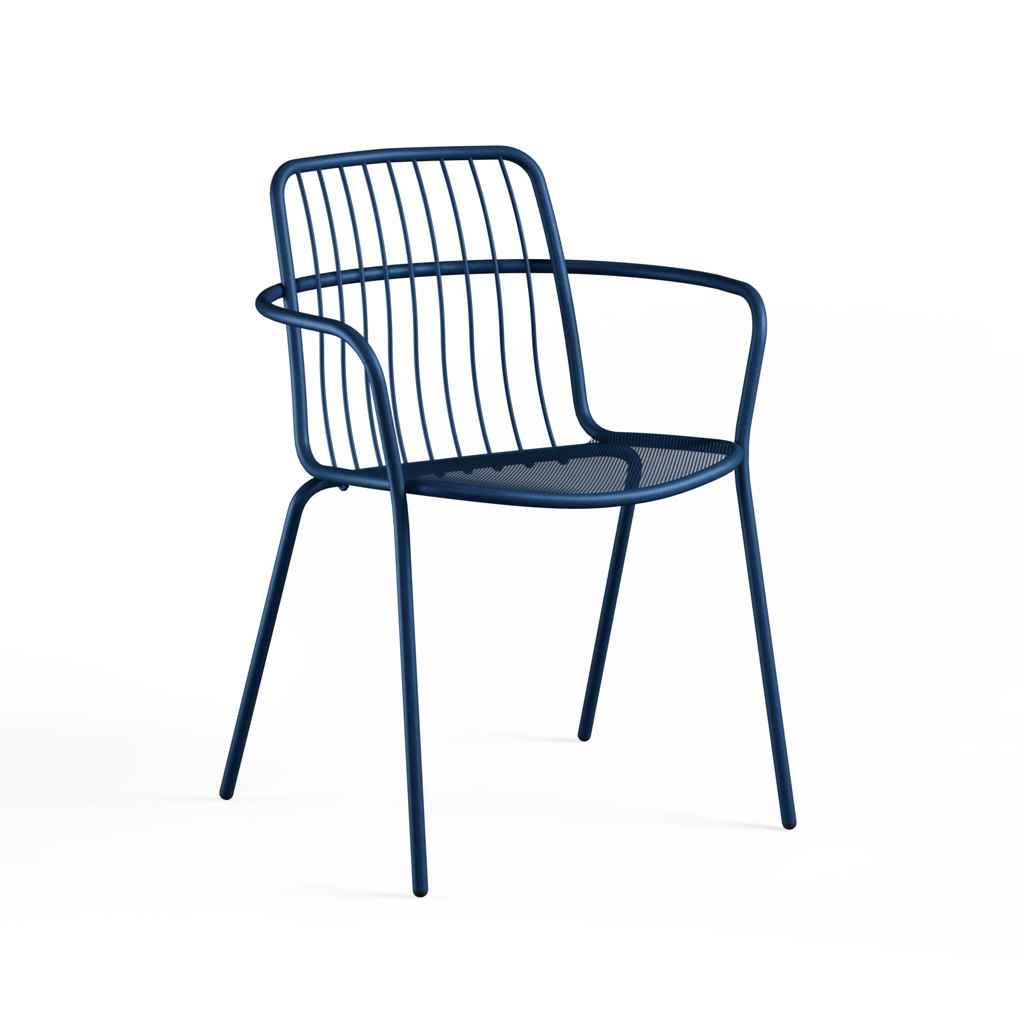 De Emu Alisea tuinstoel met armleuningen in saphire blue is een stapelbare outdoor armchair in staal met ademende stalen mesh zitting en luchtige rug in metalen spijlen, ontworpen door Alessandro Stabile. Lees meer