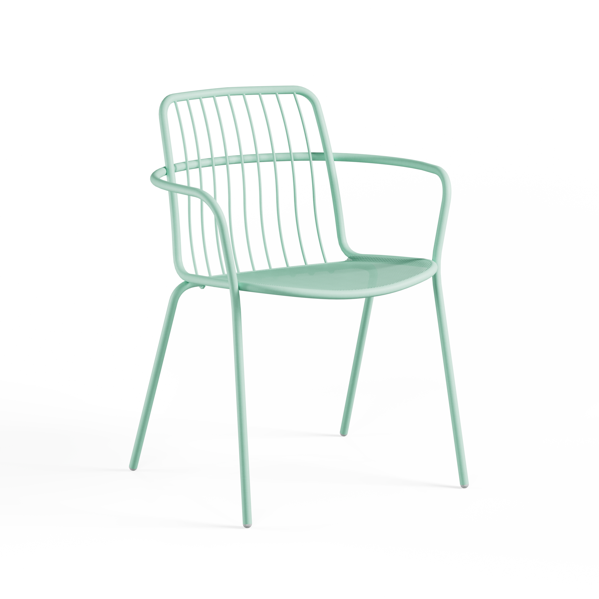 De Emu Alisea tuinstoel met armleuningen in spring green is een stapelbare outdoor armchair in staal met ademende stalen mesh zitting en luchtige rug in metalen spijlen, ontworpen door Alessandro Stabile. Lees meer