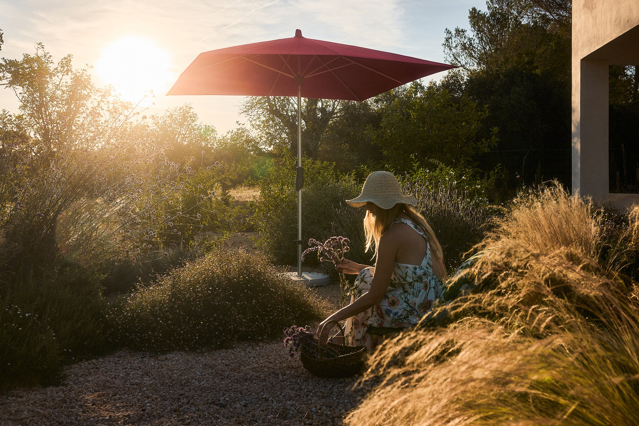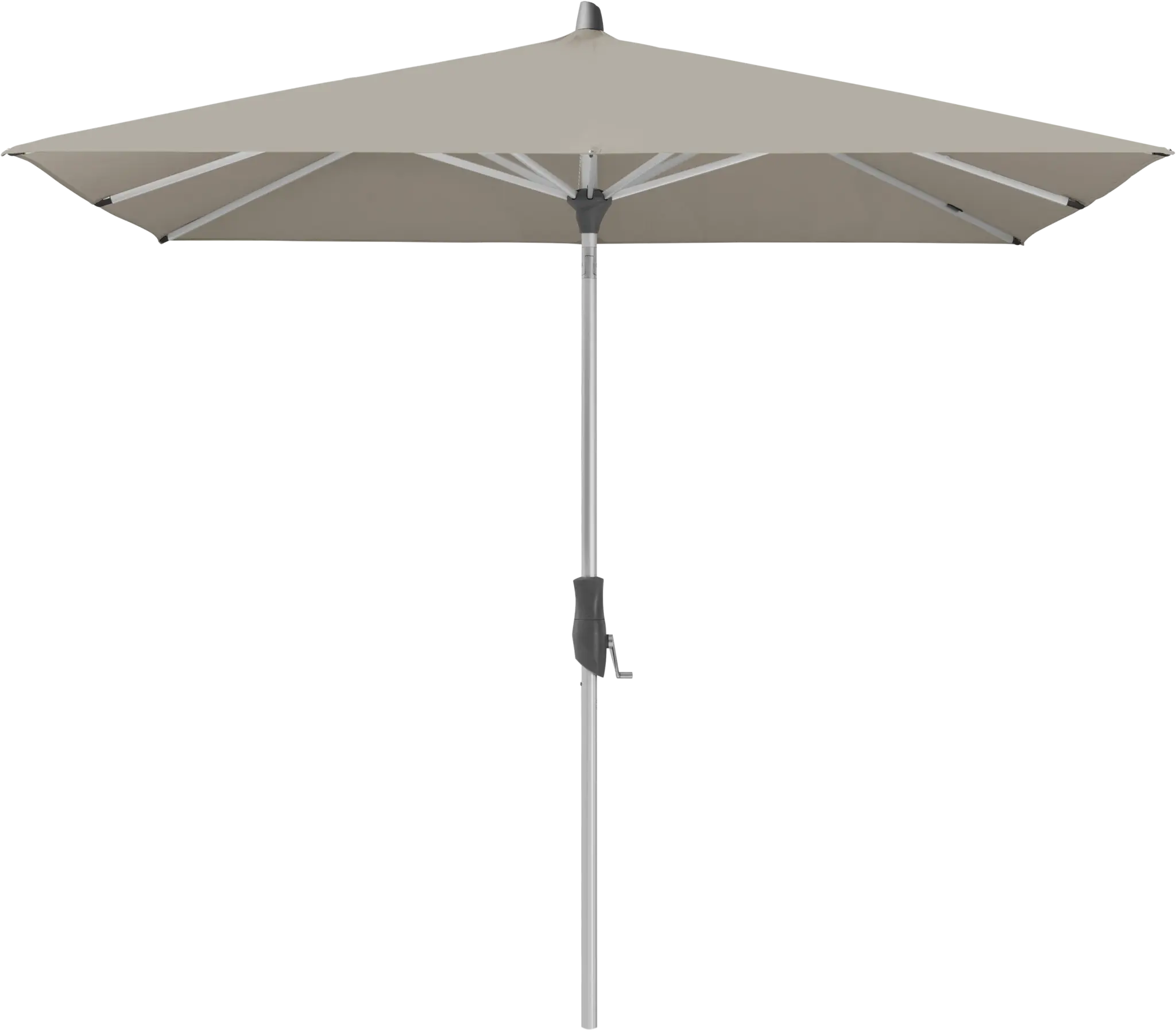 De Glatz Alu-Twist is een parasol die weet wat hij wil: maximale schaduw met minimale moeite. Het doek open je met een handig krukmechanisme, en dankzij de traploos verstelbare draaigreep kantel je de parasol tot 32° – precies zoveel als nodig om de zon de pas af te snijden, op welk moment van de dag ook.