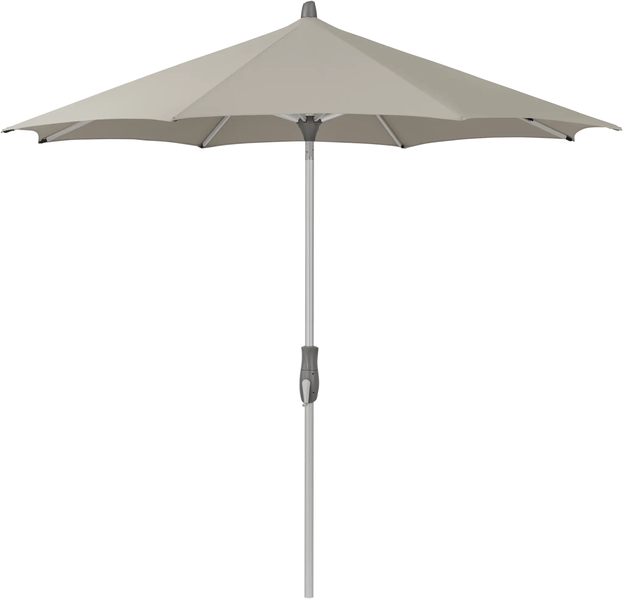 Het frame is vervaardigd uit naturel geanodiseerd aluminium: licht, sterk en bestand tegen de wisselvalligheden van het buitenleven. Met 6 of 8 spaken biedt de Alu-Twist een stabiel en evenwichtig baldakijn dat ook bij een frisse bries netjes op zijn plek blijft.