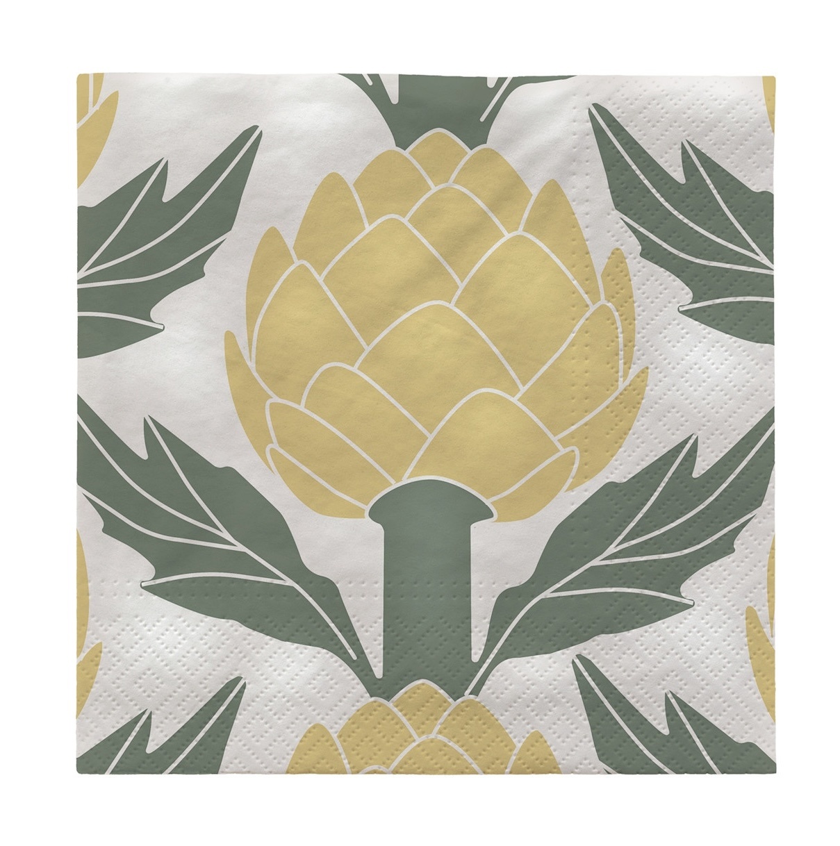 De Broste Copenhagen Artichoke papieren servetten in Agave Green en Butter Yellow geven je tafel een frisse, grafische touch. Ze komen in een pakje van 20. Lees meer