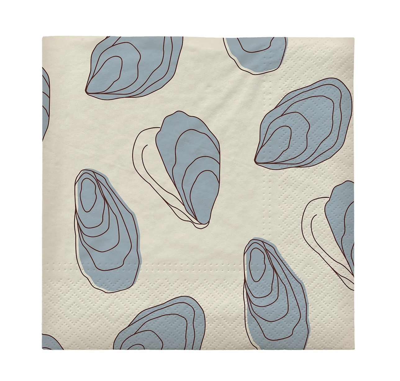 De Broste Copenhagen Oyster papieren servetten (set van 20) in lichtblauw met zwart brengen een subtiel grafisch accent op tafel, in een royaal formaat van 33 x 33 cm. Lees meer