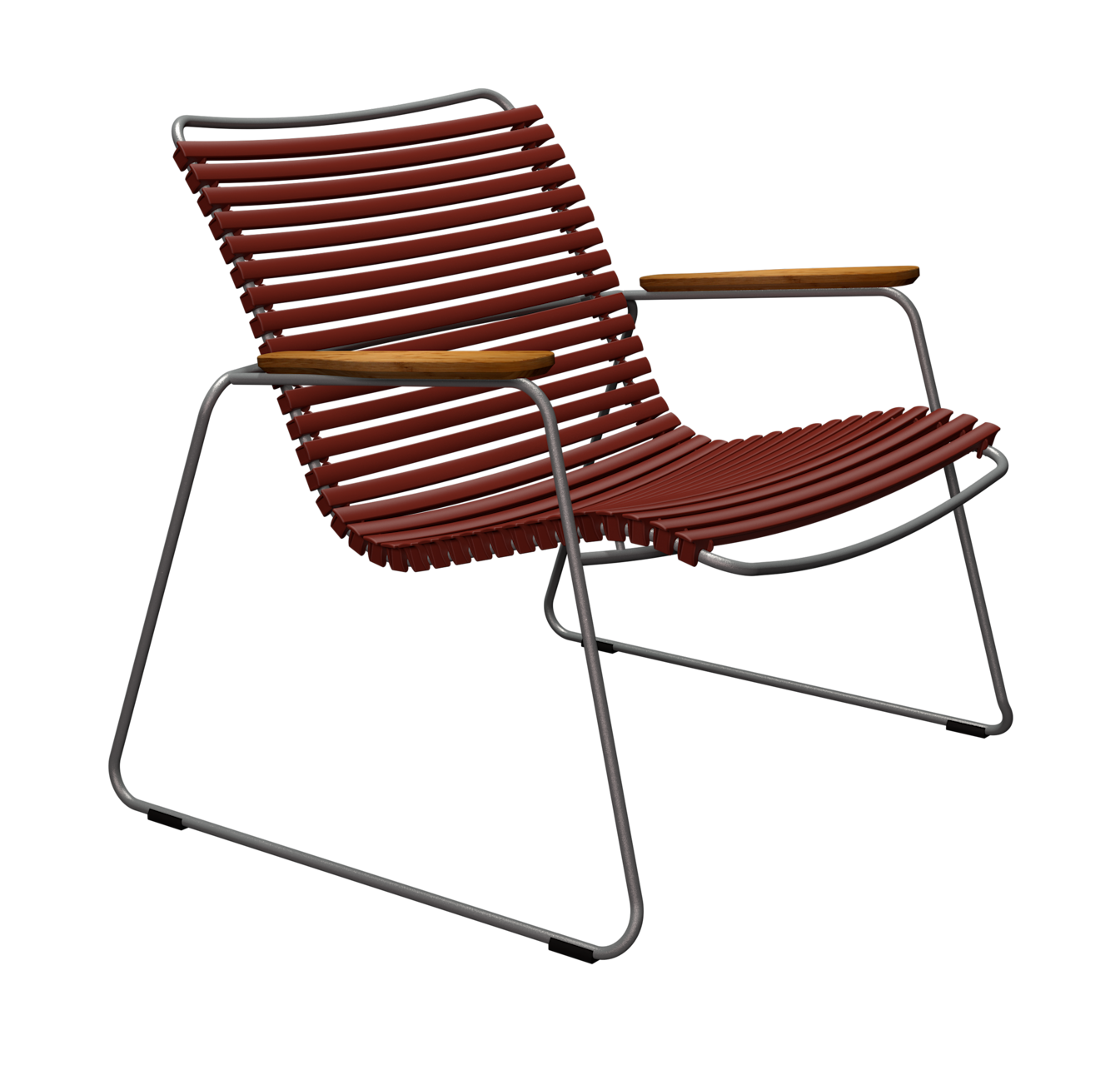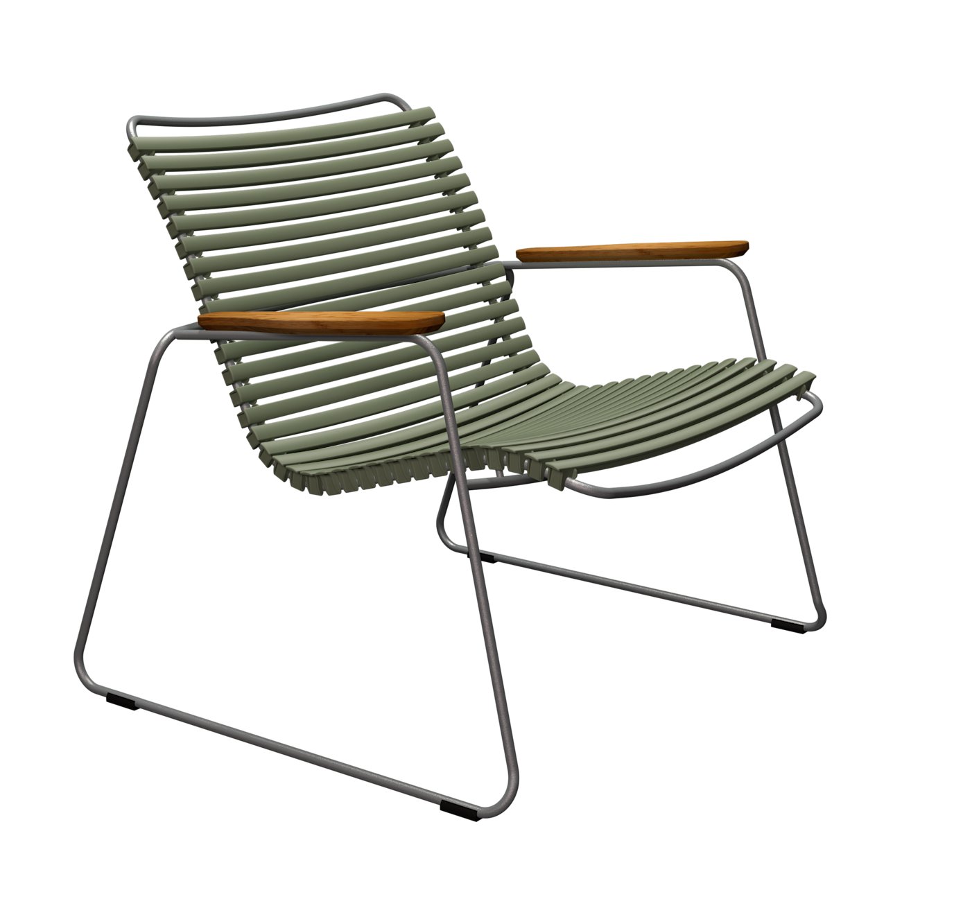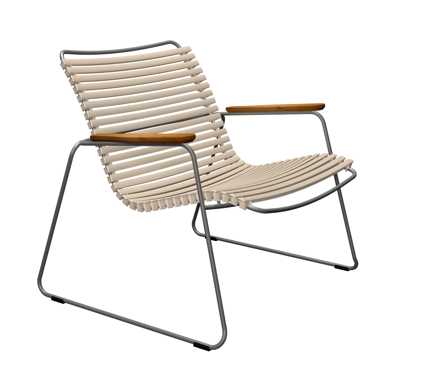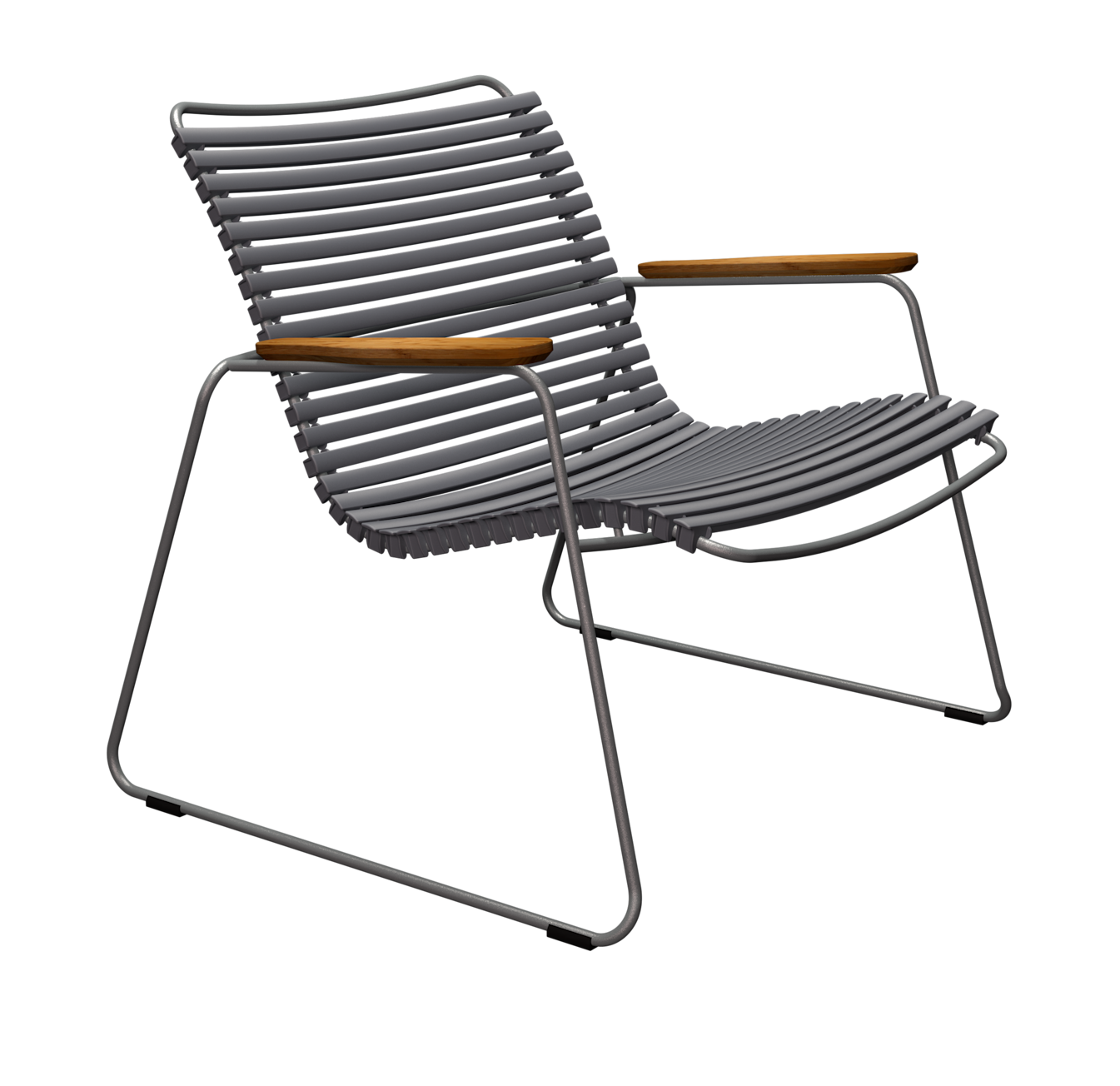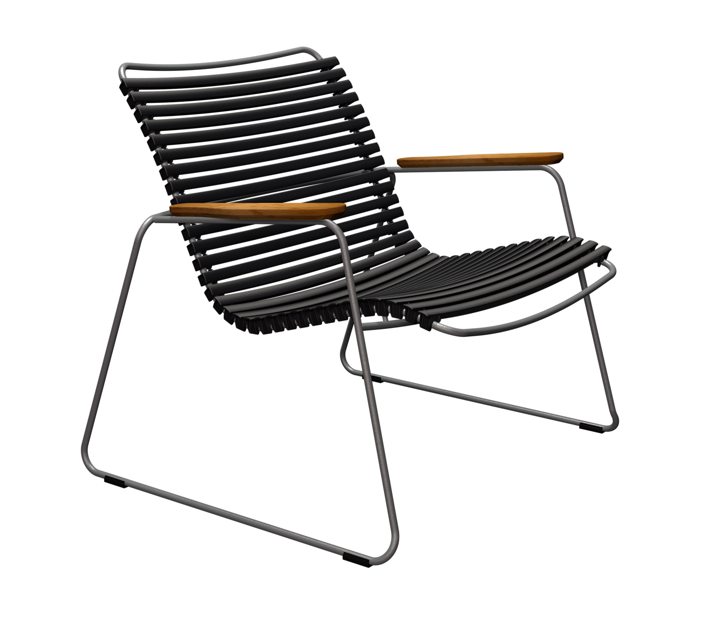 De Houe Click Roomy loungestoel combineert een donkergrijs stalen frame met veerkrachtige PP lamellen en bamboe armleuningen; de lamellen zijn per stuk vervangbaar, handig bij slijtage of een nieuwe look. Lees meer