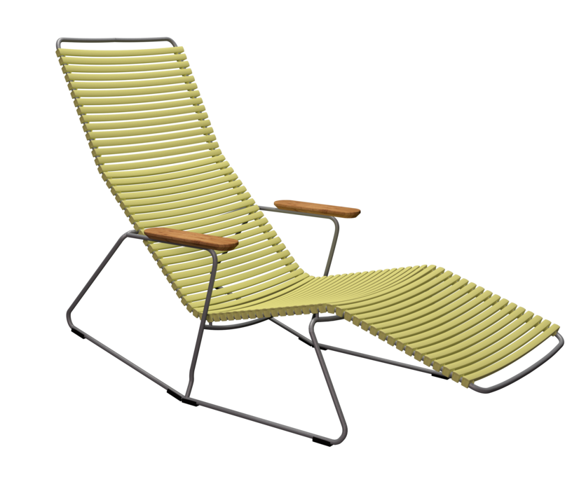 CLICK is een collectie outdoor meubilair gemaakt in intelligent ontworpen kunststof lamellen in combinatie met gepoederlakt metaal en bamboe. Elke component is zorgvuldig vormgegeven om de lamellen de nodige sterkte en veerkracht te geven zodat optimaal zitcomfort geboden en een extra kussen niet nodig is.