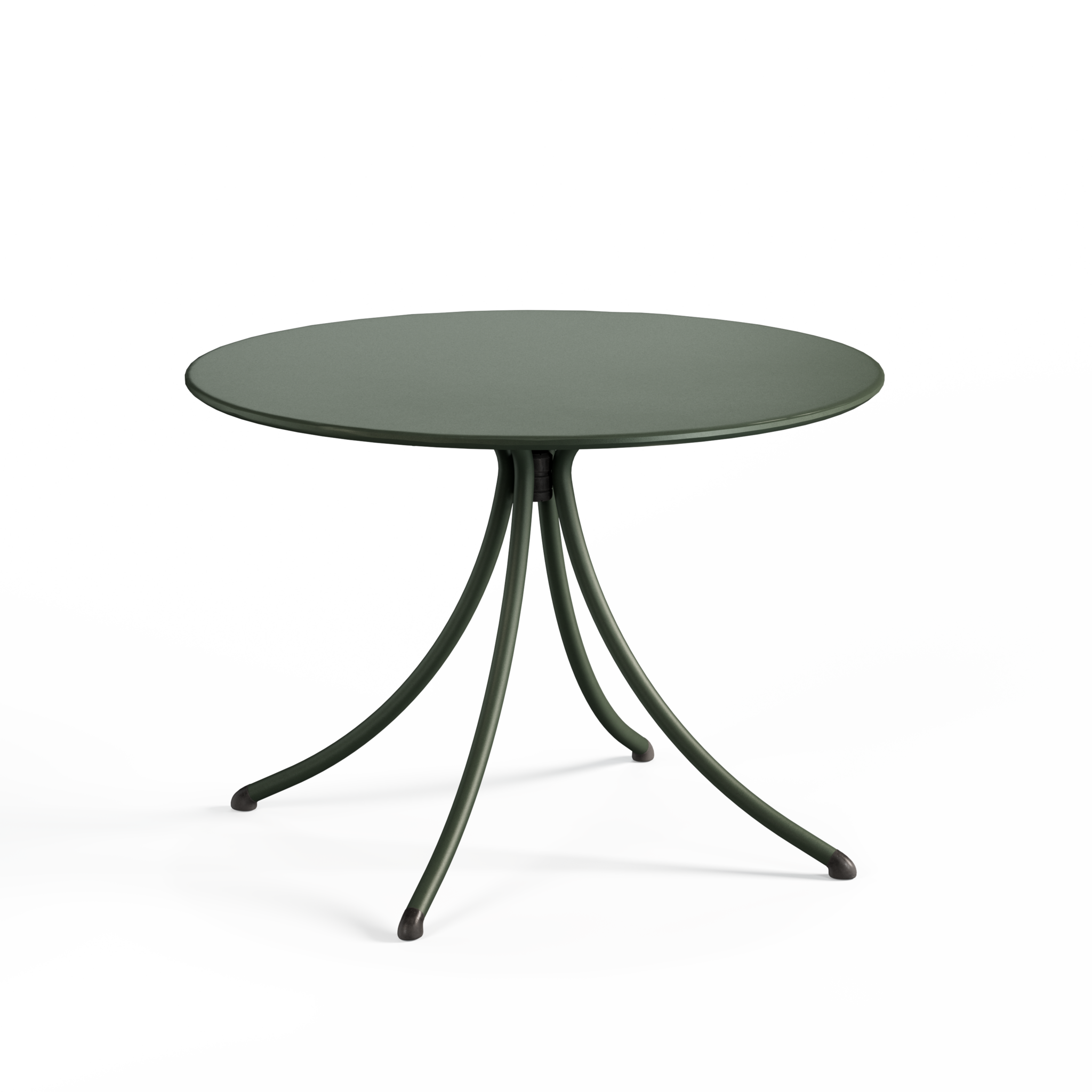 Ronde tuintafel Combo van Emu in dark green, met een stalen buisframe en een thermisch verzinkt stalen tafelblad met gevouwen rand — compact, sterk en tijdloos van ontwerp. Lees meer