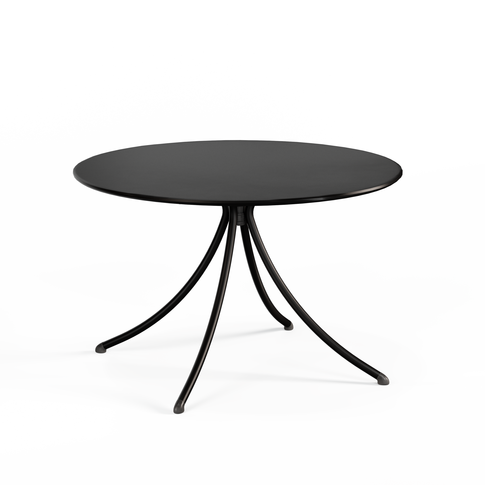 Ronde tuintafel Combo van Emu in black, met een stalen buisframe en een thermisch verzinkt stalen tafelblad met gevouwen rand — compact, sterk en tijdloos van ontwerp. Lees meer