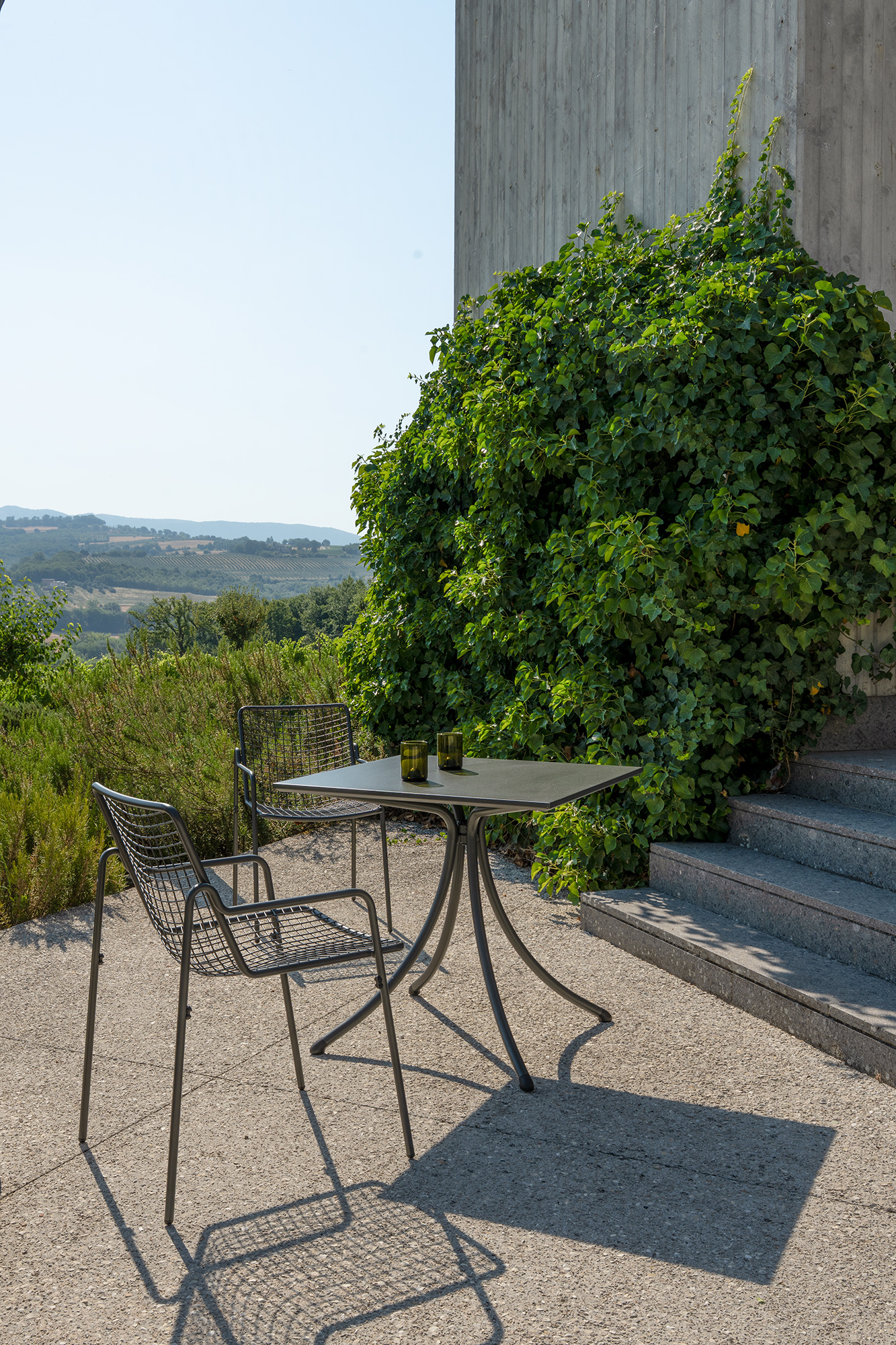 Ronde tuintafel Combo van Emu in grey/green, met een stalen buisframe en een heet-gegalvaniseerd stalen tafelblad met gevouwen rand — compact, sterk en tijdloos van ontwerp. Lees meer