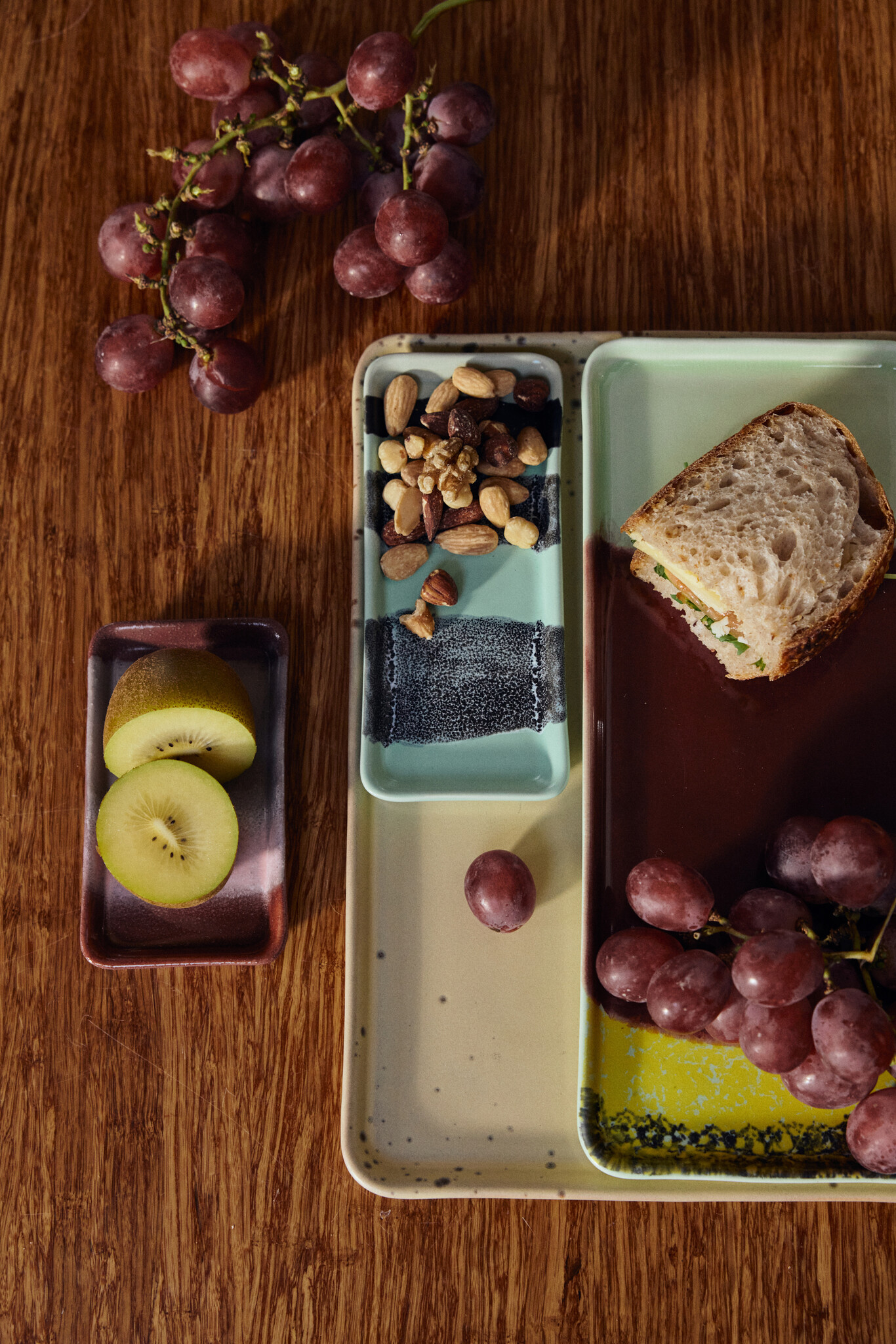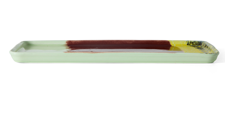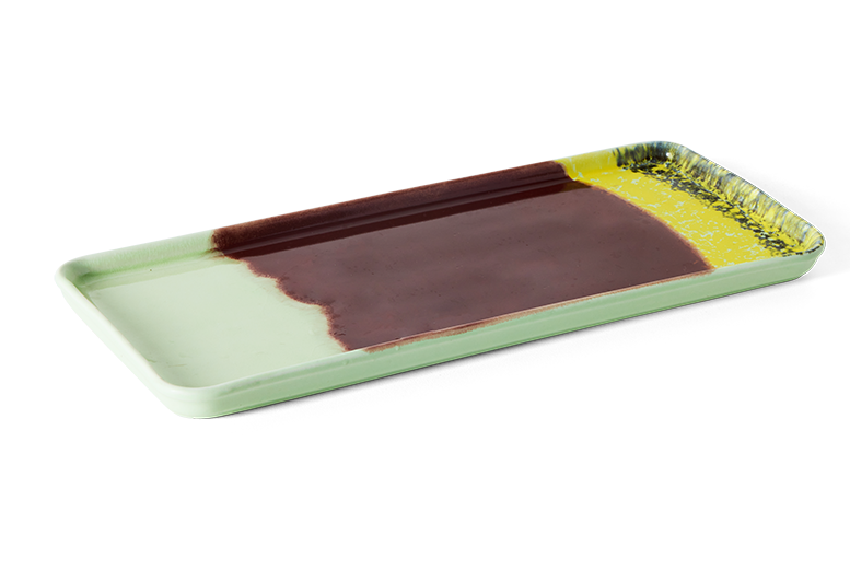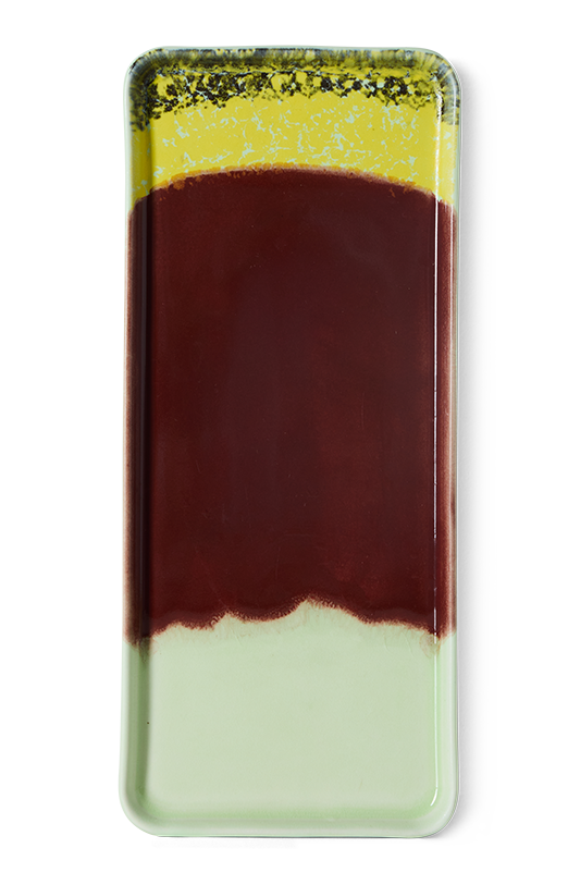 Met zijn langwerpige formaat van 31,5 × 13,5 × 2 cm is deze keramische serveerschaal ideaal voor het presenteren van taart, gebak of kleine hapjes. De slanke vorm geeft een elegante uitstraling, terwijl het formaat praktisch blijft voor dagelijks gebruik.De cherry afwerking brengt warmte en diepte in je interieur en combineert mooi met zowel neutrale tinten als andere kleurrijke stukken uit de collectie. Dankzij het reactieve glazuur is elke schaal uniek, met subtiele variaties die zorgen voor een levendig en persoonlijk karakter. Deze cake tray maakt deel uit van de herkenbare 70s ceramics collectie van HKliving, een reeks die bekendstaat om zijn speelse glazuren en retro invloeden. Perfect om te combineren met andere stukken voor een warme en gelaagde tafelsetting.