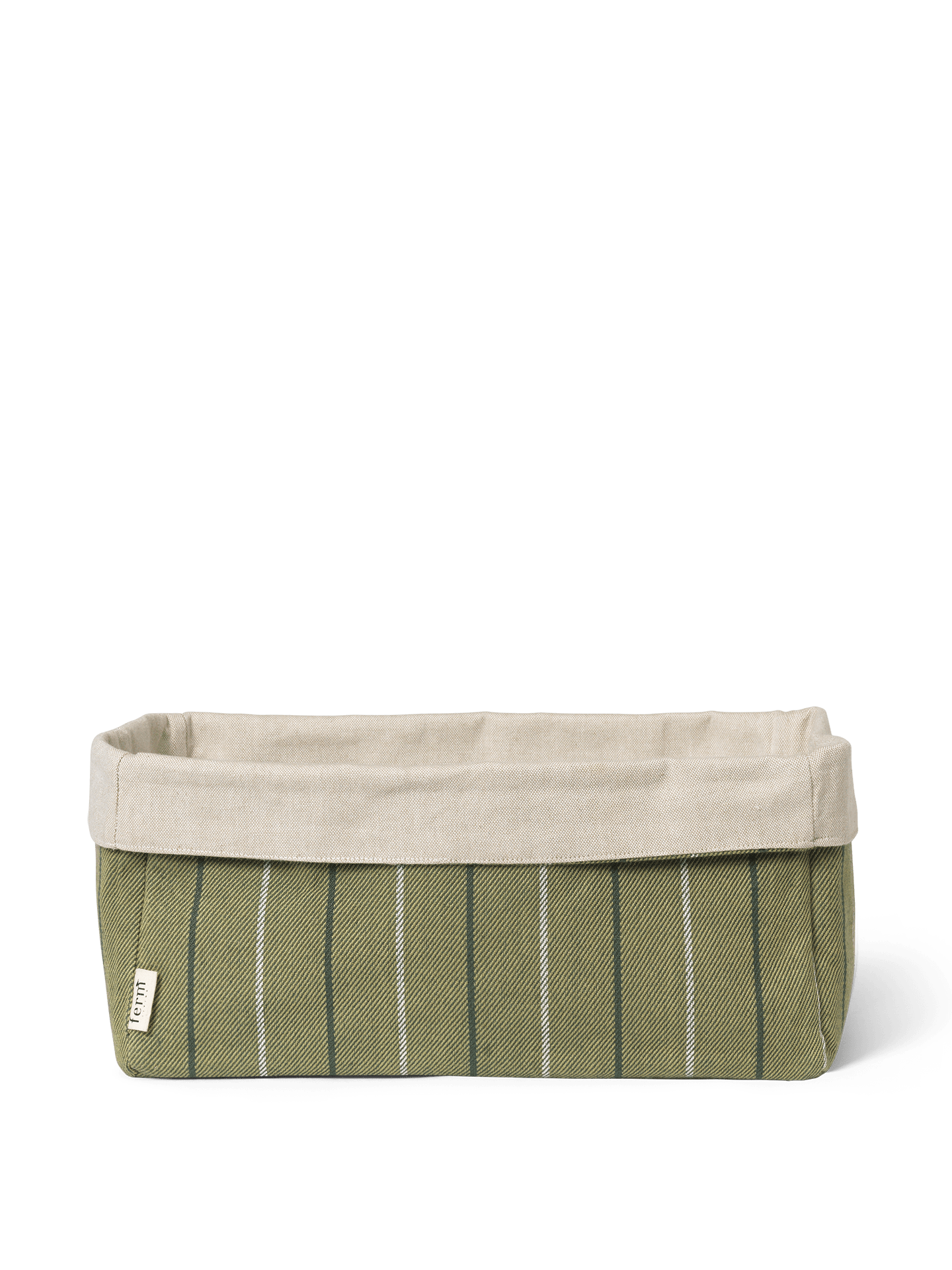 De Ferm Living Ito keukenmand rechthoekig in natural/seaweed is een omkeerbare opbergmand in GOTS-gecertificeerd biologisch katoen, ideaal voor brood, uien en andere voorraad met een moderne streep. Lees meer
