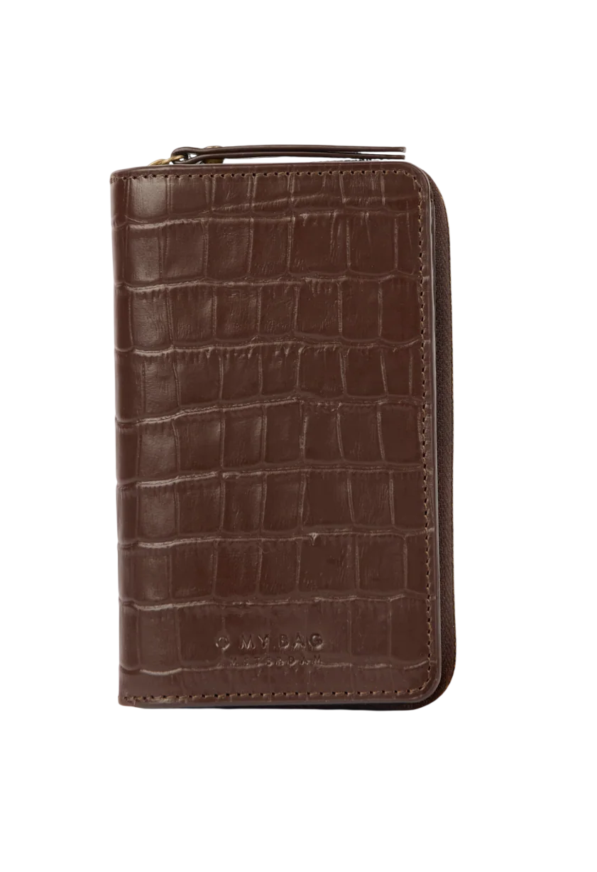 Jett portefeuille - croco print leder chocoladebruin