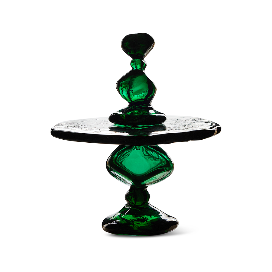 De Jewel cake stand diopside van HKLiving, ontworpen met Nienke Sikkema, is een sculpturale glazen taartstandaard met een diepe groene kleur en uitgesproken karakter. Lees meer