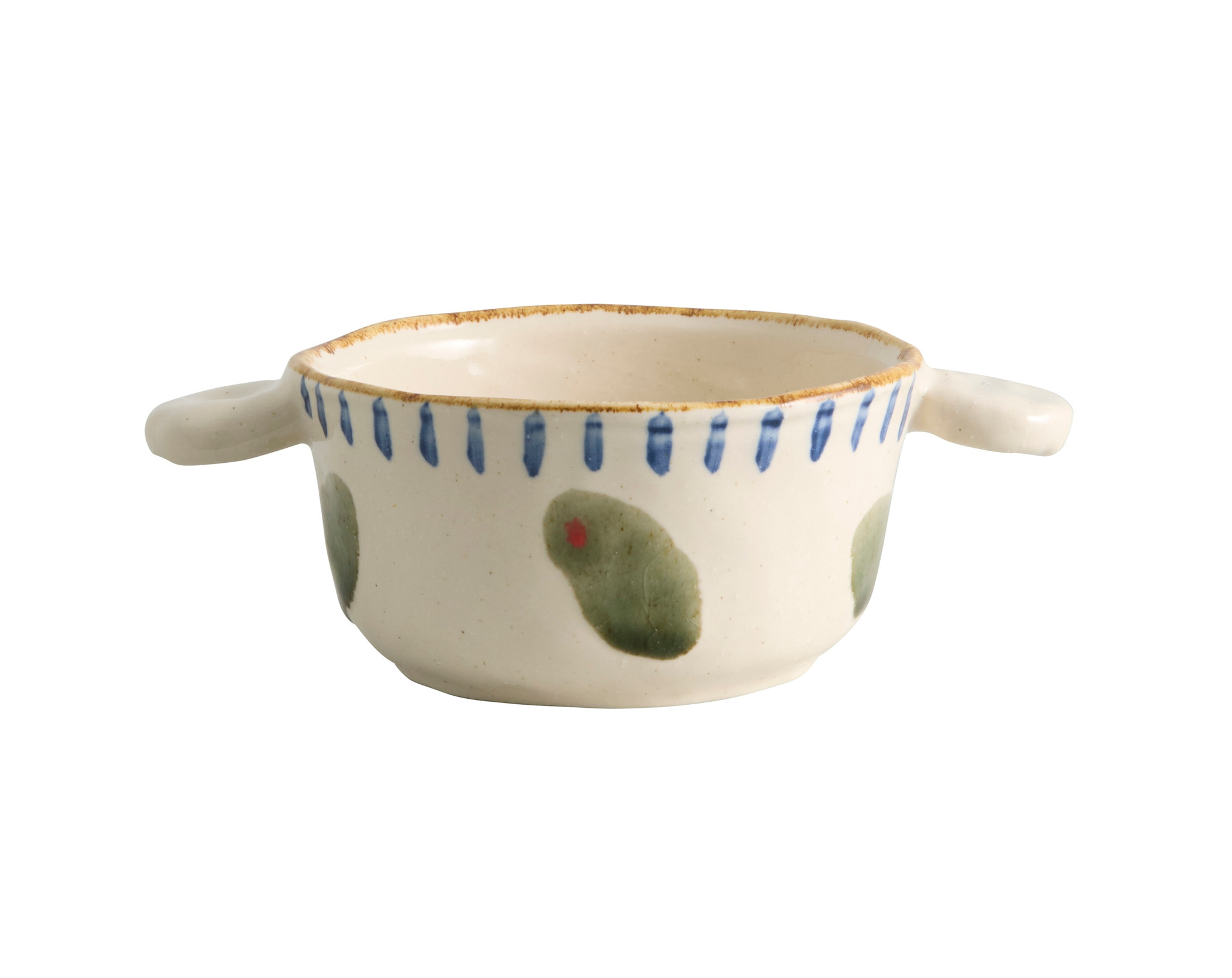 Dankzij de kleine handvatten ligt het kommetje prettig in de hand en verplaats je het makkelijk van keuken naar tafel. Handig voor een portie yoghurt, dip, olijven of een klein bijgerecht, maar evengoed als klein pronkstukje op een open plank.