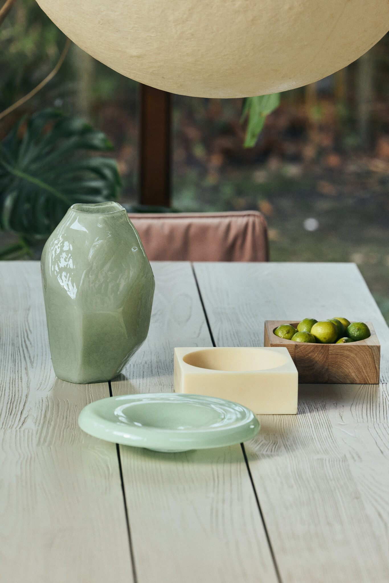 Met zijn formaat van 22 × 22 × 8 cm heeft deze schaal een duidelijke aanwezigheid. Groot genoeg om een statement te maken, zonder zwaar aan te voelen in je interieur.