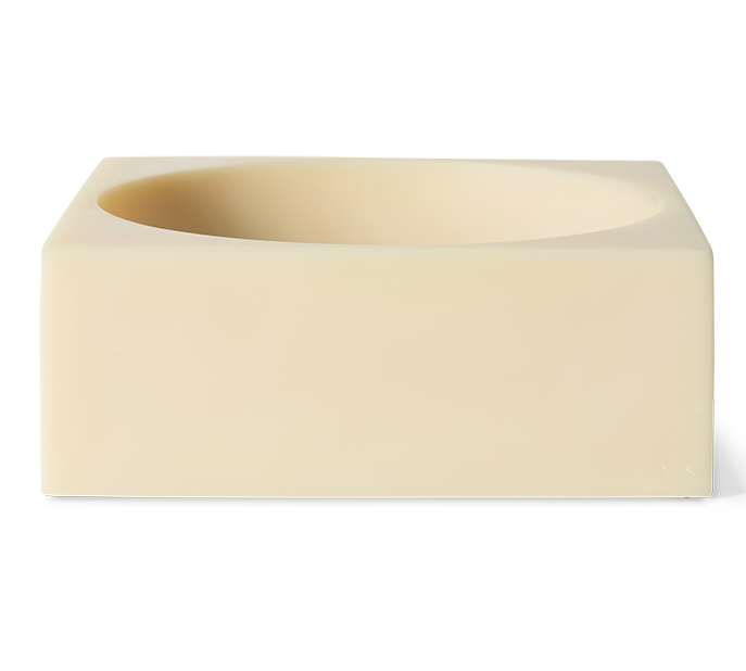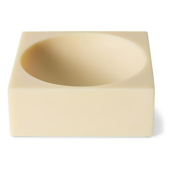 De Pop Cube large cream van HKliving brengt rust en structuur samen in één krachtig object. De strakke kubusvorm wordt verzacht door een afgeronde binnenzijde, waardoor een subtiel spel ontstaat tussen geometrie en functionaliteit.