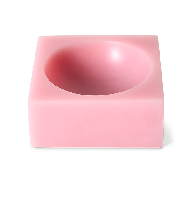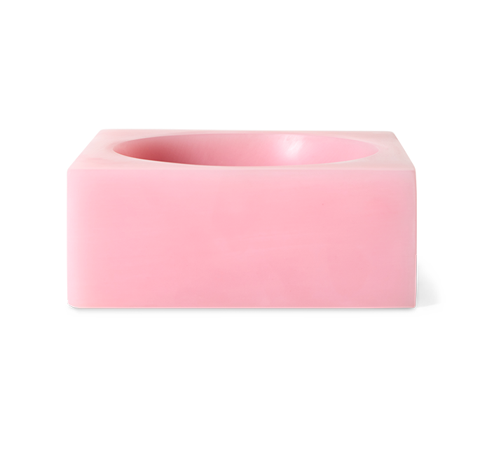 De Pop Cube small pink van HKliving speelt met contrasten op een verrassend zachte manier. Strakke lijnen en een kubusvorm worden gecombineerd met een afgeronde binnenzijde, waardoor een object ontstaat dat tegelijk grafisch en vriendelijk aanvoelt.