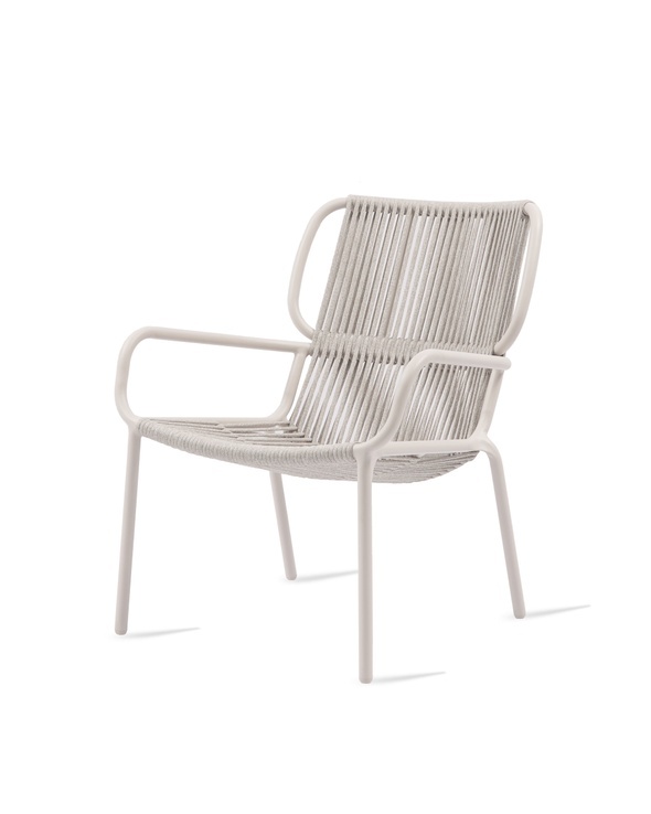 De Ribbon lounge chair van Vincent Sheppard is een stoel die je terras meteen “af” laat voelen, zonder dat hij de aandacht opeist. Het slanke poedergecoat aluminium frame houdt het geheel licht en strak, terwijl de handgeweven zitting in polypropyleen rope net genoeg textuur toevoegt om het spannend te houden.