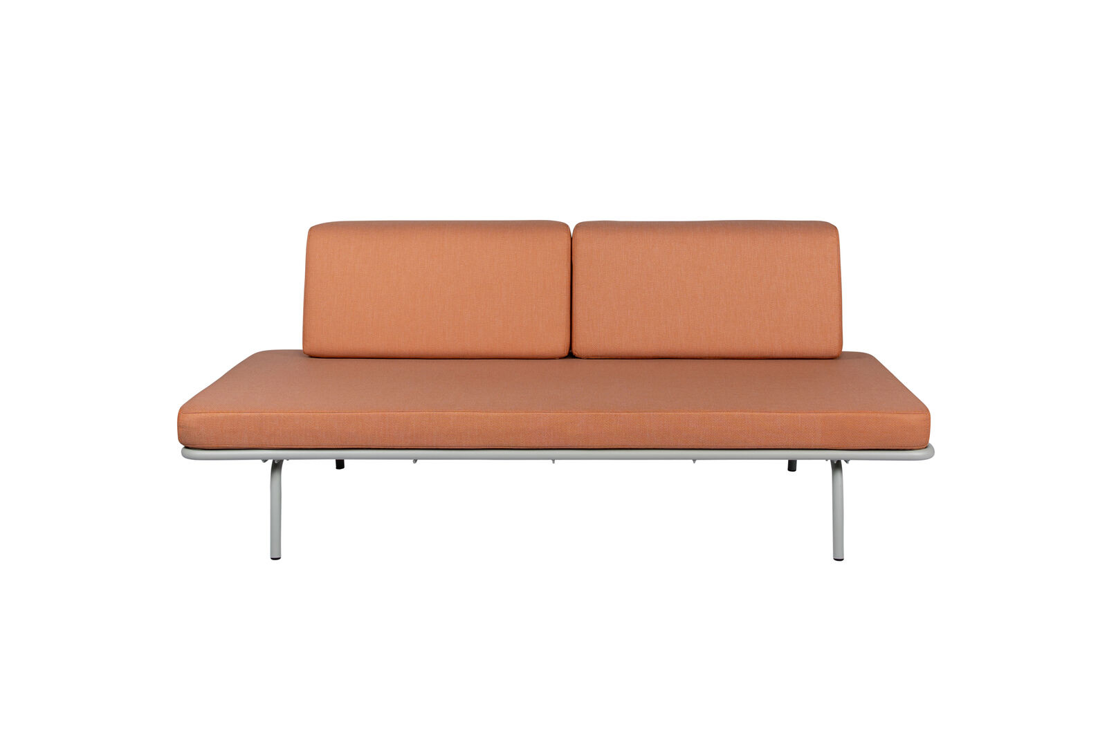De kussens en het matras zijn bekleed met olefin: zacht, sterk en uitzonderlijk kleurvast. Het materiaal is waterbestendig en heeft een ventilerende onderzijde, waardoor zelfs een natgeregend matras relatief snel weer droogt. Het gepoedercoate stalen frame kan het hele jaar buiten blijven staan, wat dit Sofabed extra praktisch maakt voor kleinere buitenruimtes.