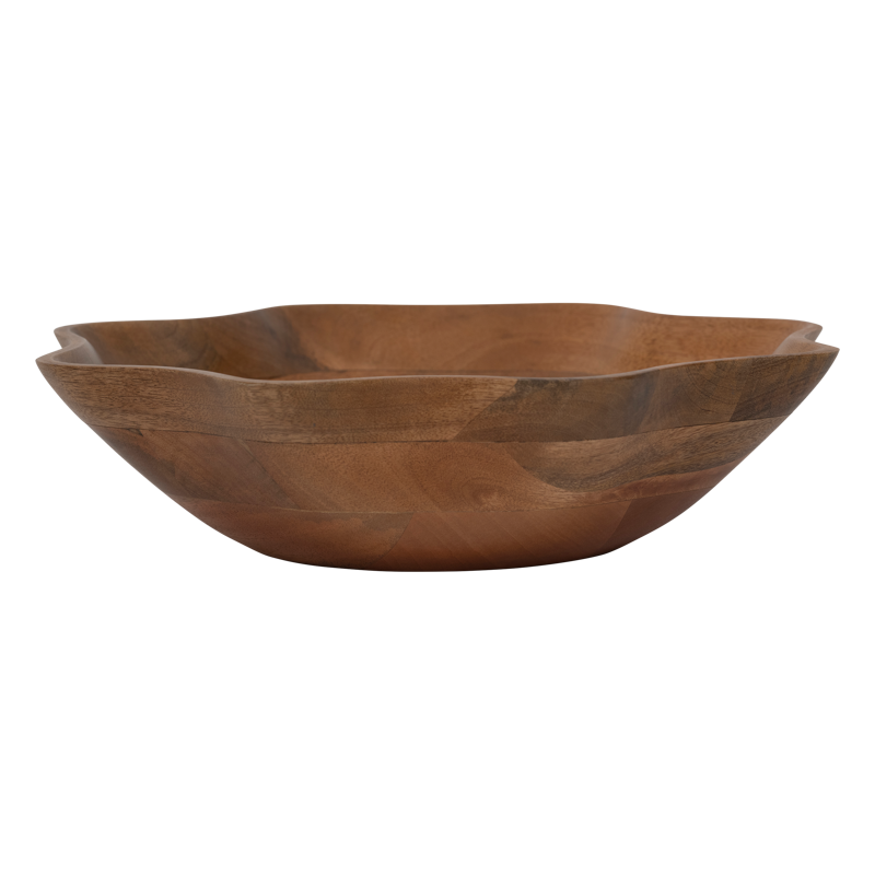 De Bonnie serveerkom van Urban Nature Culture is zo’n stuk dat meteen rust brengt op tafel. Het mangohout heeft een warme, levendige tekening en voelt van nature uitnodigend aan, zonder dat het schreeuwerig wordt.