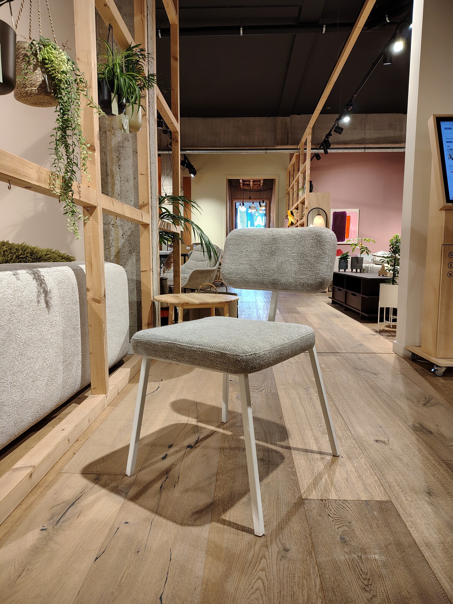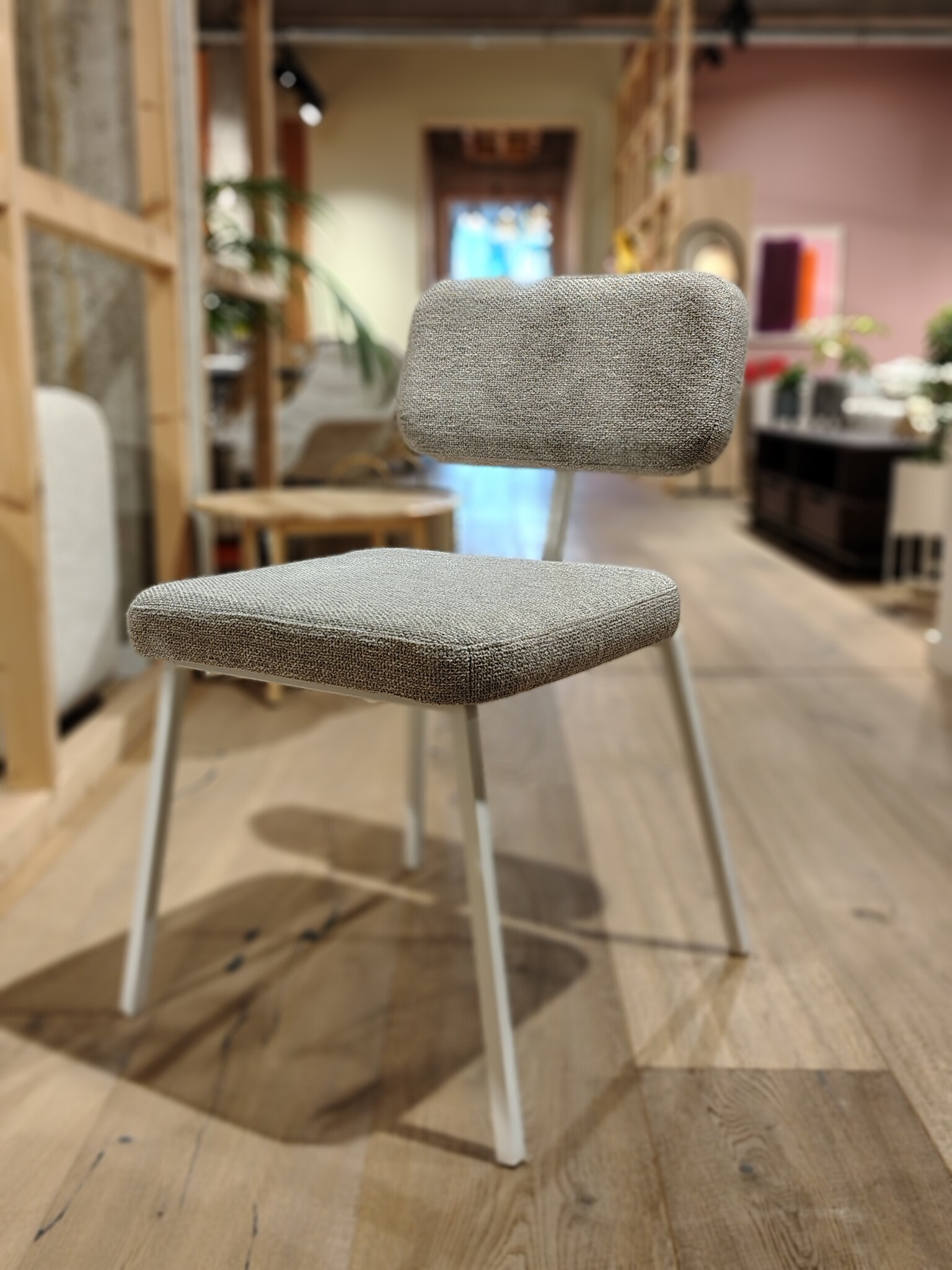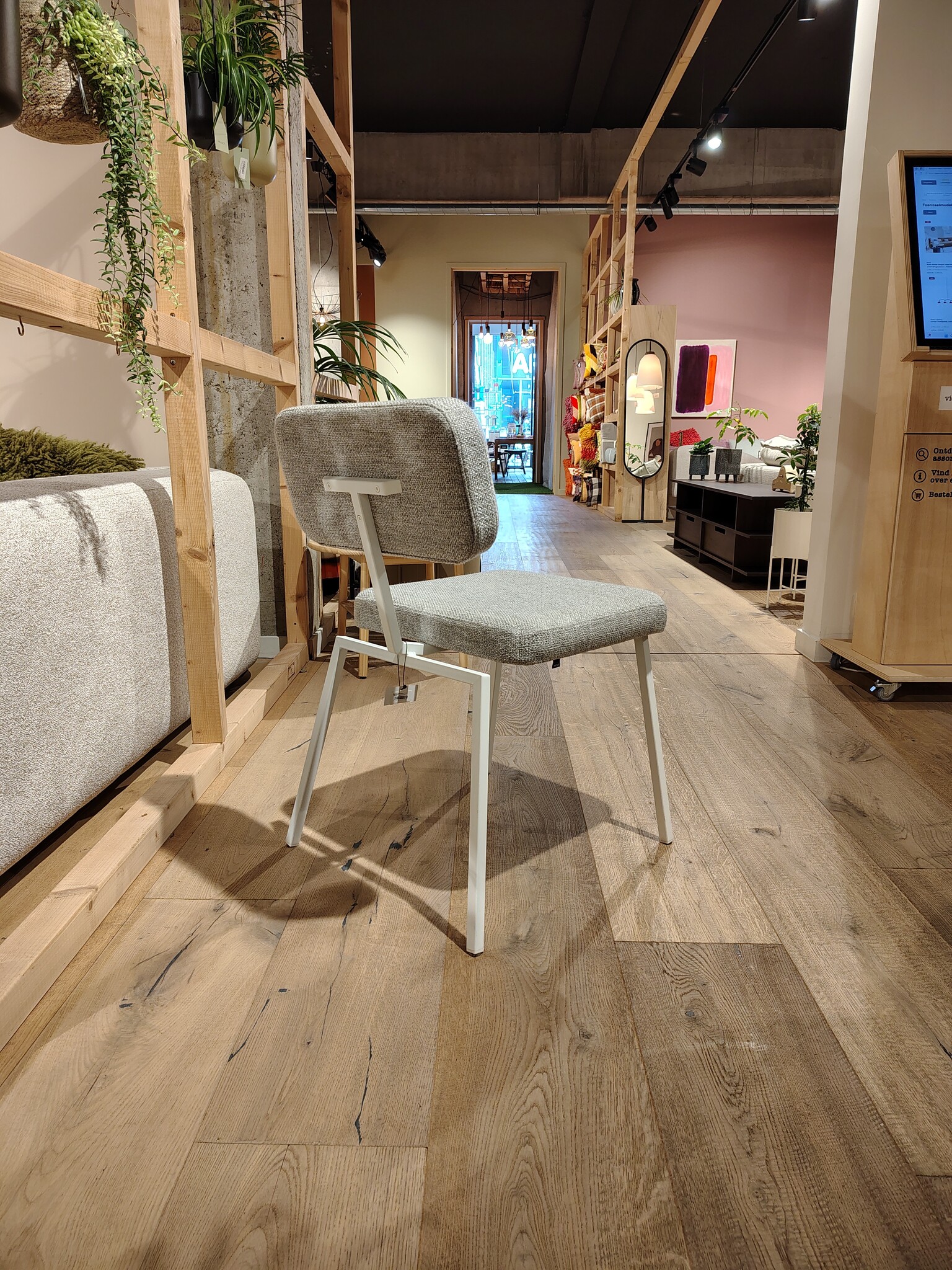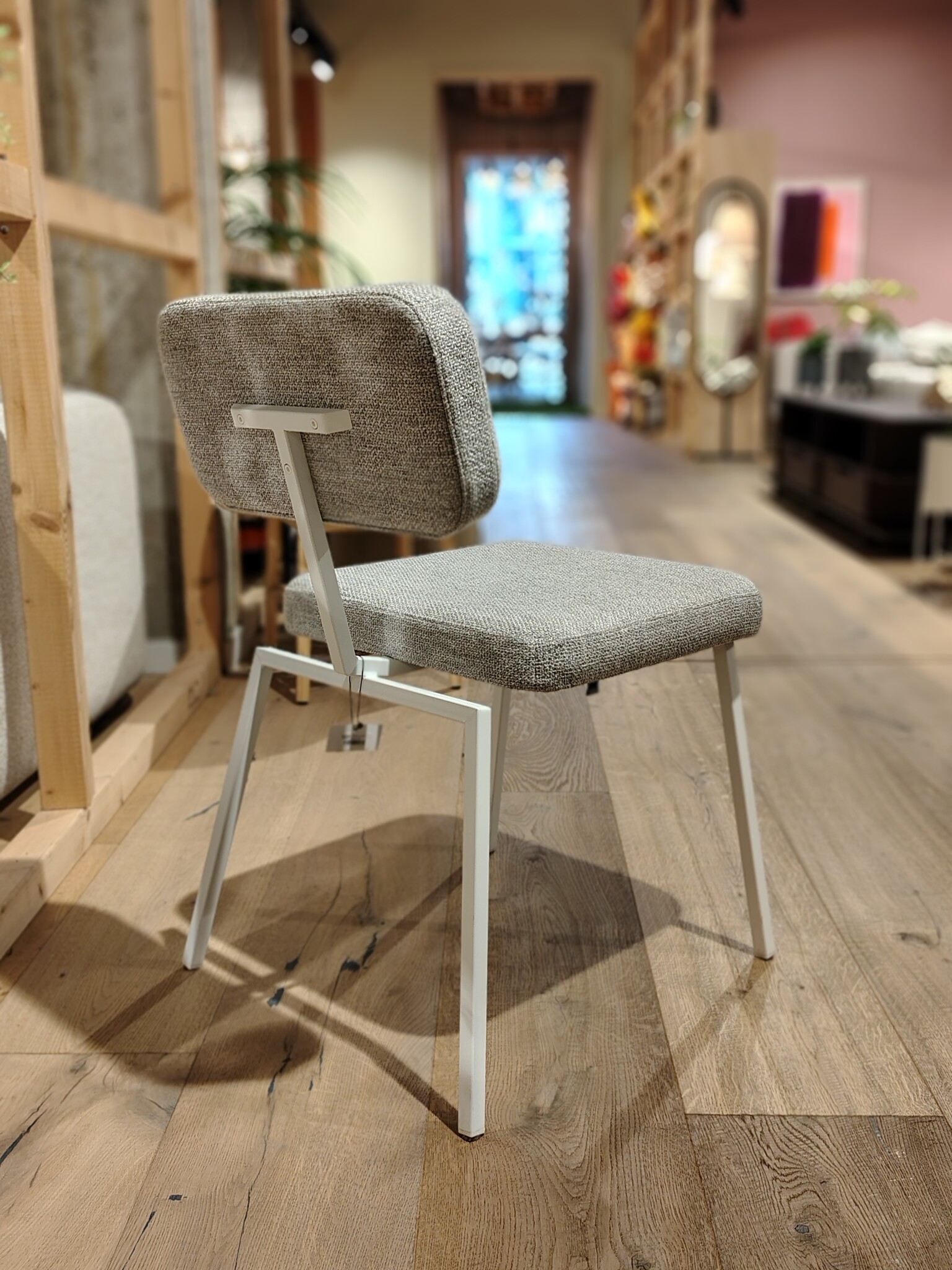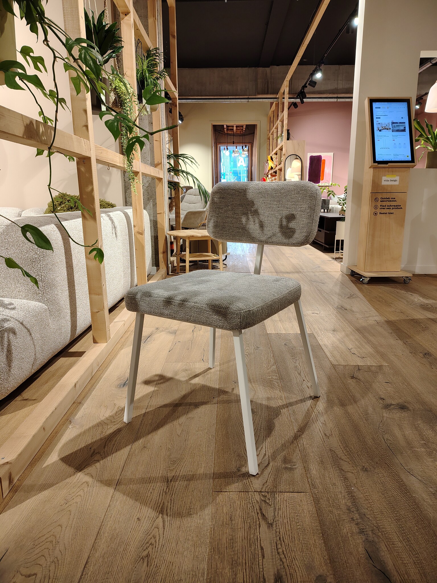 Ode eetkamerstoel - witte frame - grijze Brema zitting