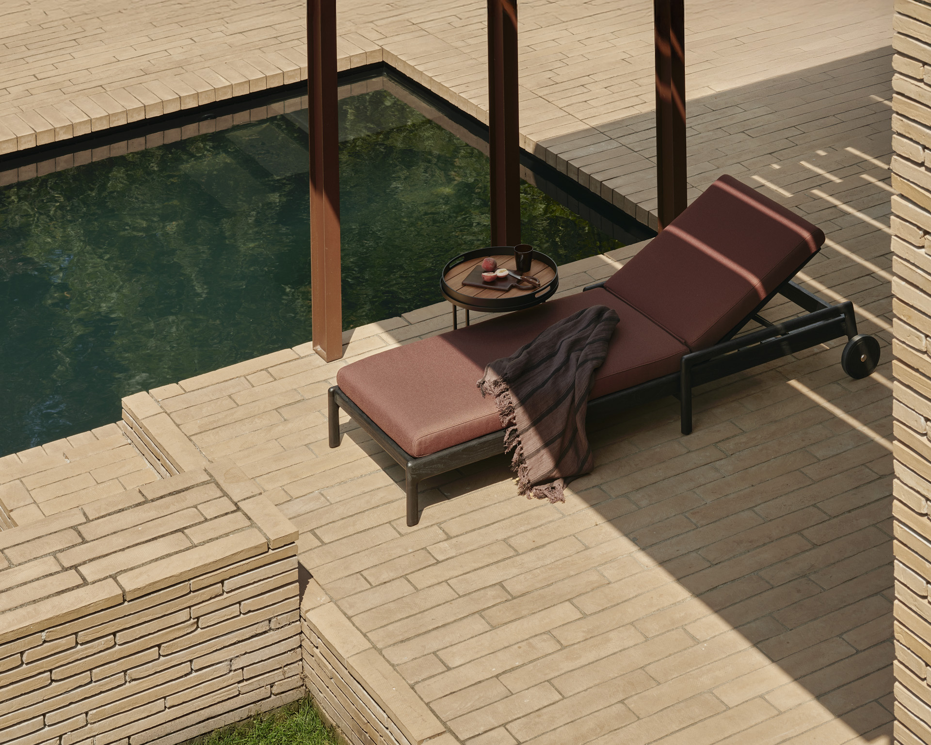 De dark bronze kleur geeft het geheel een warme, rustige uitstraling die mooi blendt met hout, natuursteen en textiel. Dankzij het lichte aluminium verplaats je de tafel makkelijk naar waar het leven zich afspeelt: bij de lounge, naast een ligbed of als extra oppervlak aan tafel.