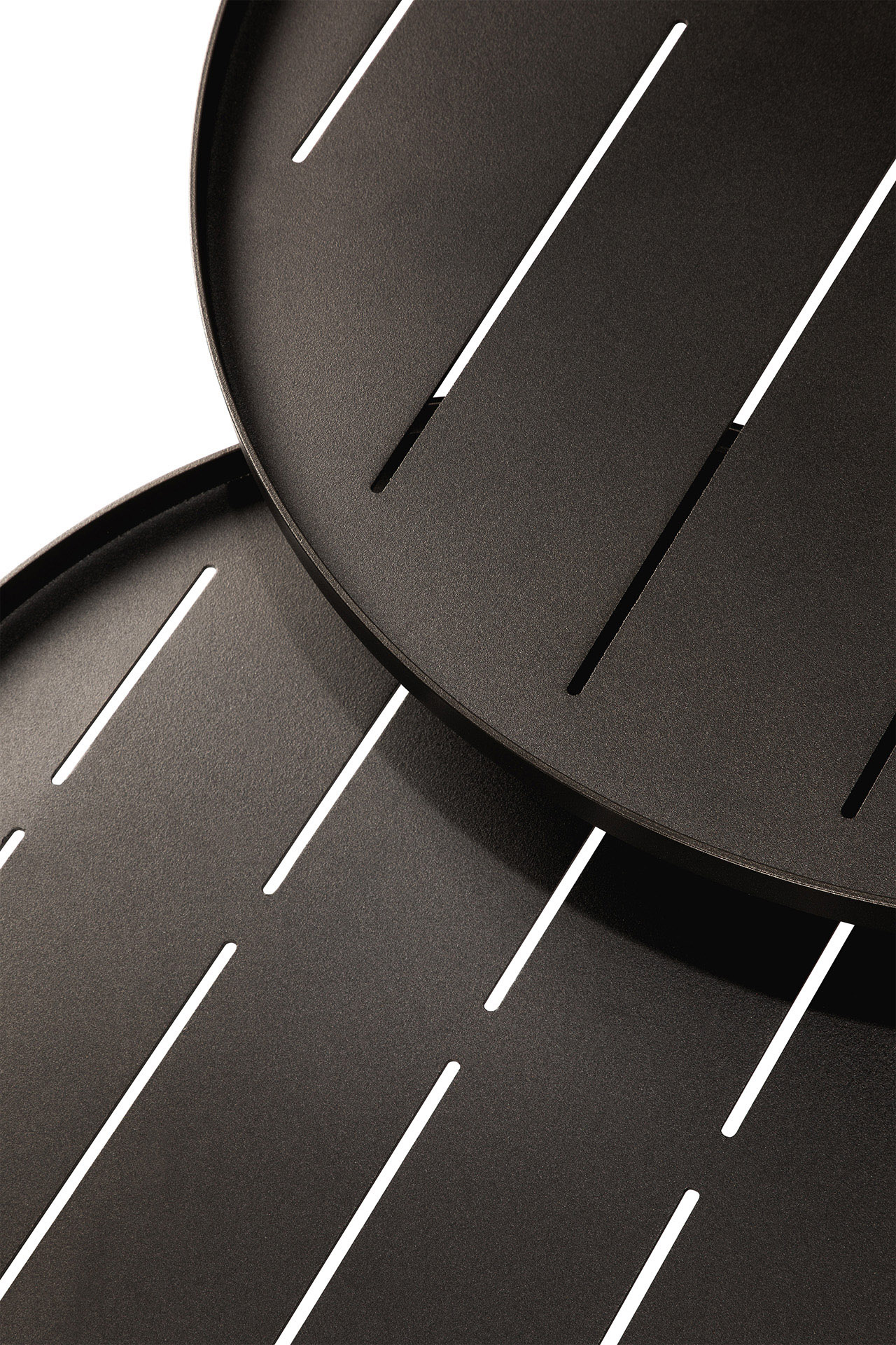 De Ethnicraft Outdoor dienblad salontafel set van 2 in aluminium Dark Bronze combineert twee ronde buitentafels met een blad dat gemaakt is om Ethnicraft dienbladen te dragen, voor flexibel loungen buiten. Lees meer