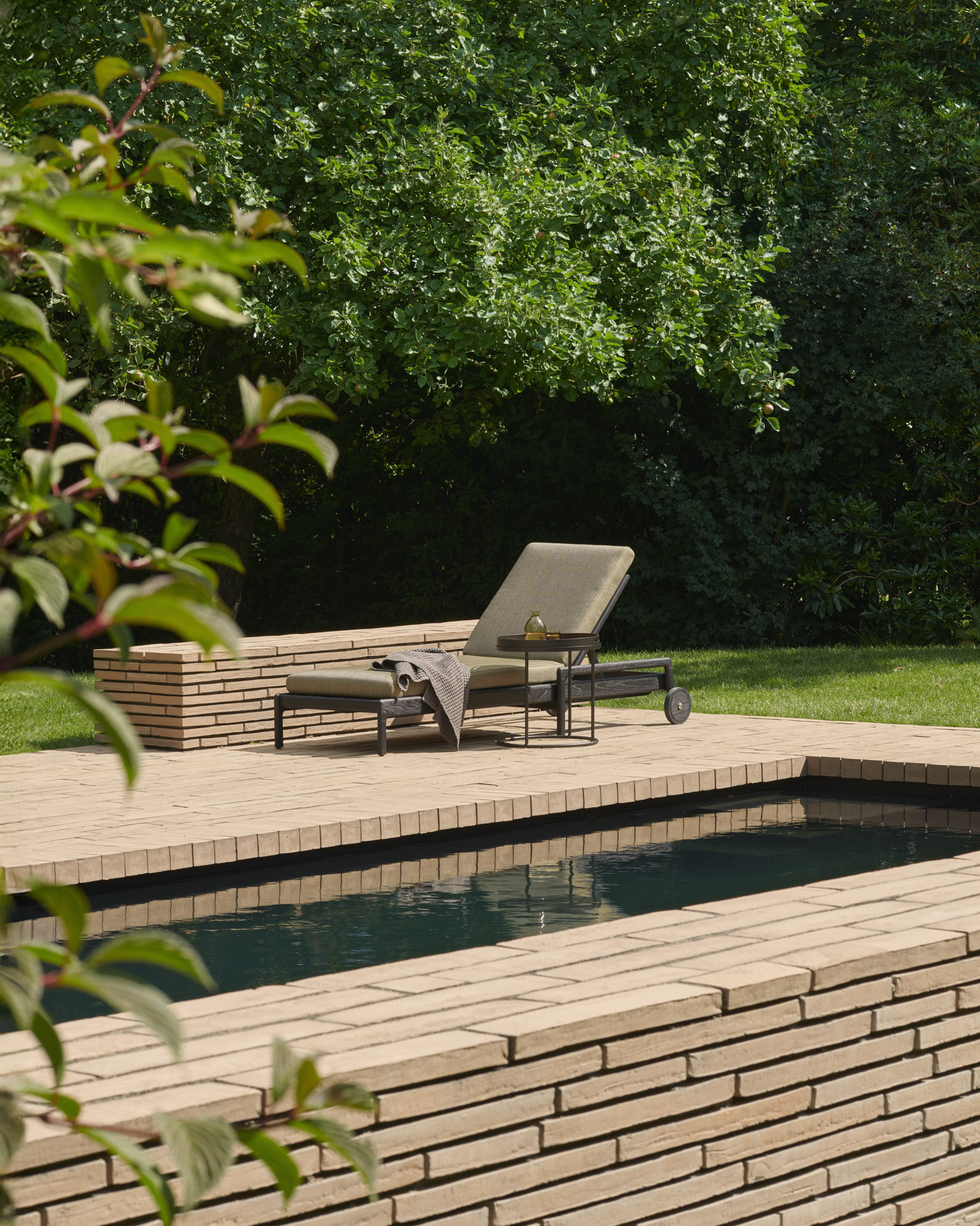 De teakhouten dienbladen bestaan in twee formaten: small en large. De afwerking in Dark Bronze geeft het aluminium een warme, ingetogen uitstraling die mooi samengaat met hout, textiel en groen. En dankzij de vloerbescherming blijft je ondergrond netjes, ook als je de opstelling graag eens verschuift.