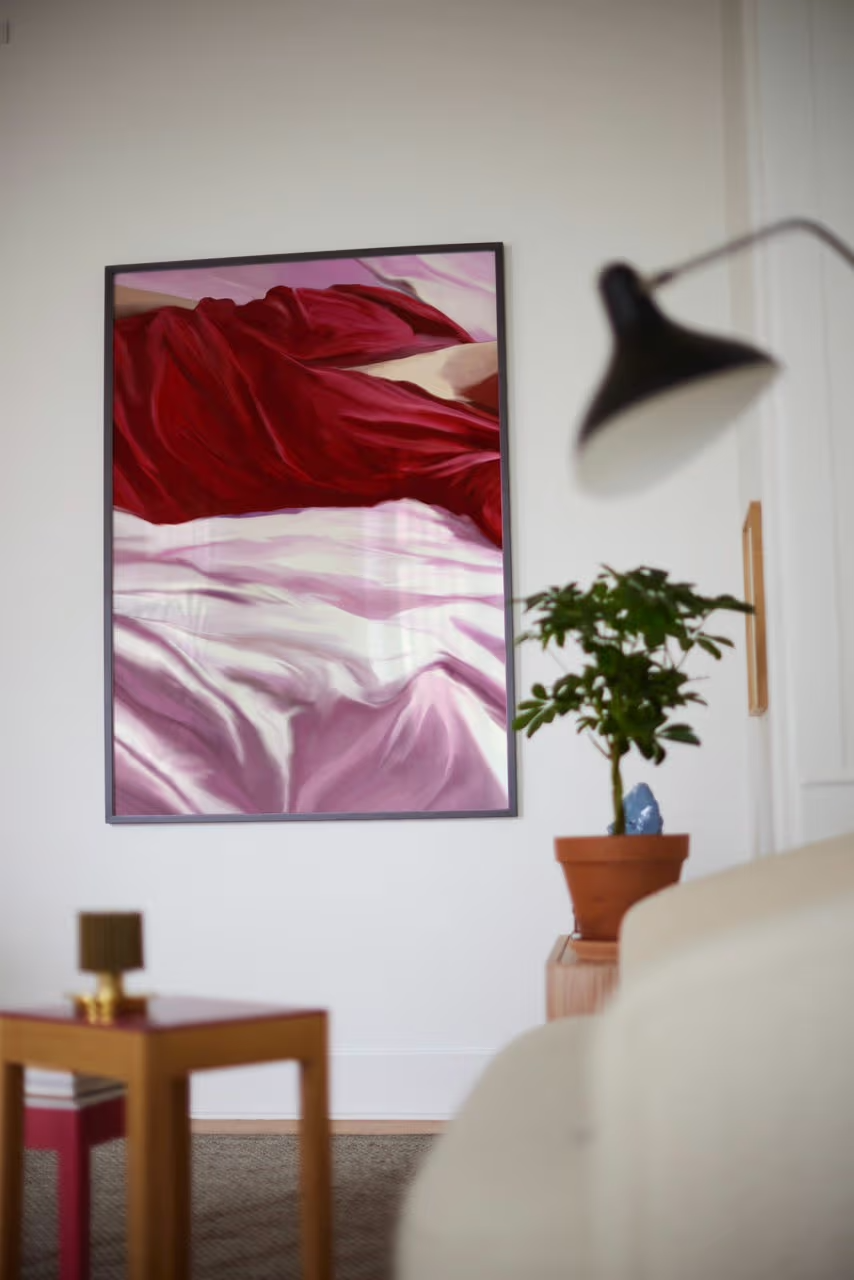 De Pink Sheets poster van Paper Collective is een intrigerend kunstwerk van de Deense kunstenares Julie Sommer, ook bekend als Misfitting Things. In dit digitale schilderij smelten zachte roze tinten, mysterieuze schaduwen en vloeiende oppervlakken samen tot een dromerige compositie. Het werk combineert de charme van een analoge schildering met de hypnotiserende esthetiek van digitale kunst, waardoor de poster een moderne, kunstzinnige uitstraling krijgt.