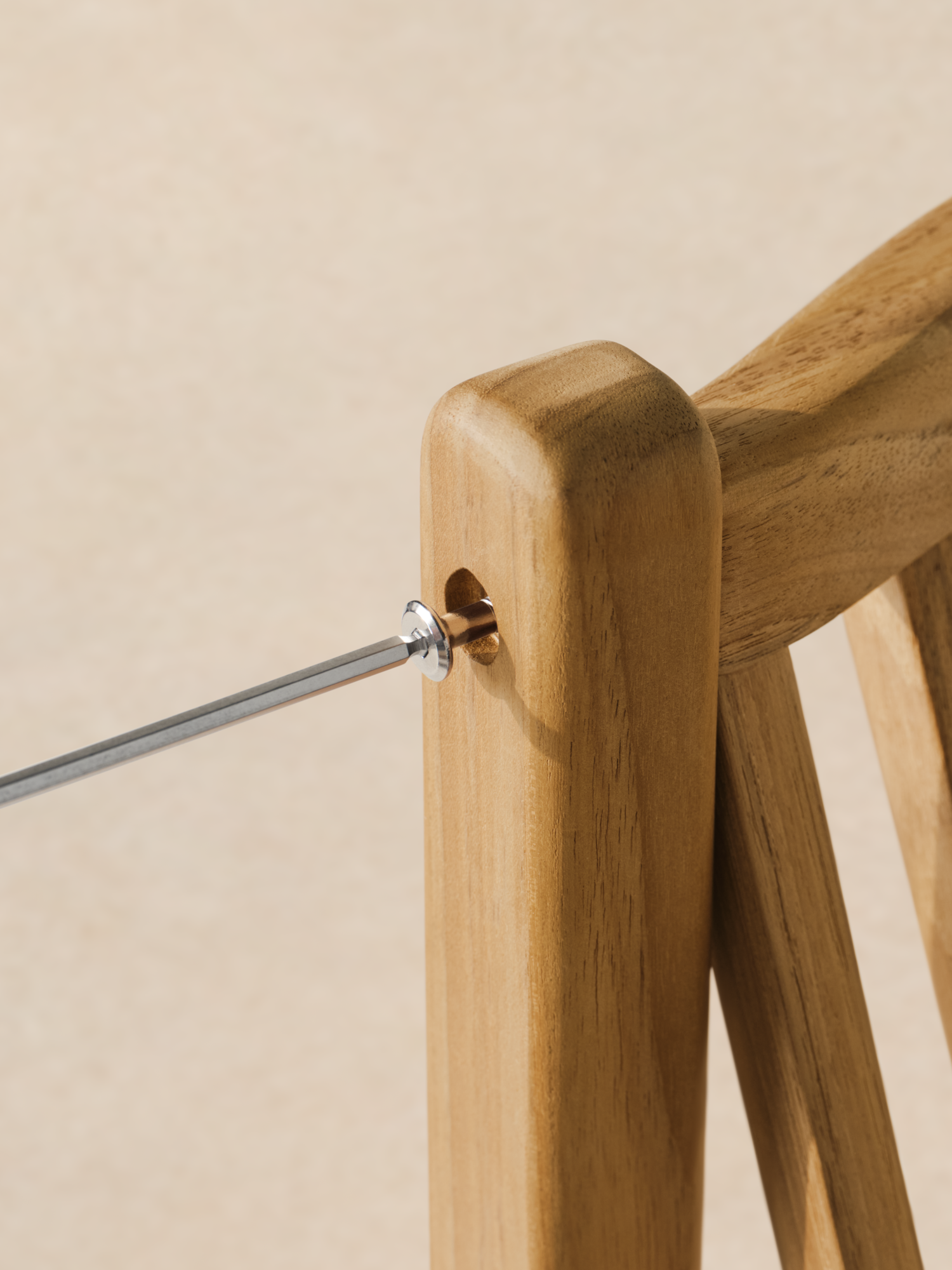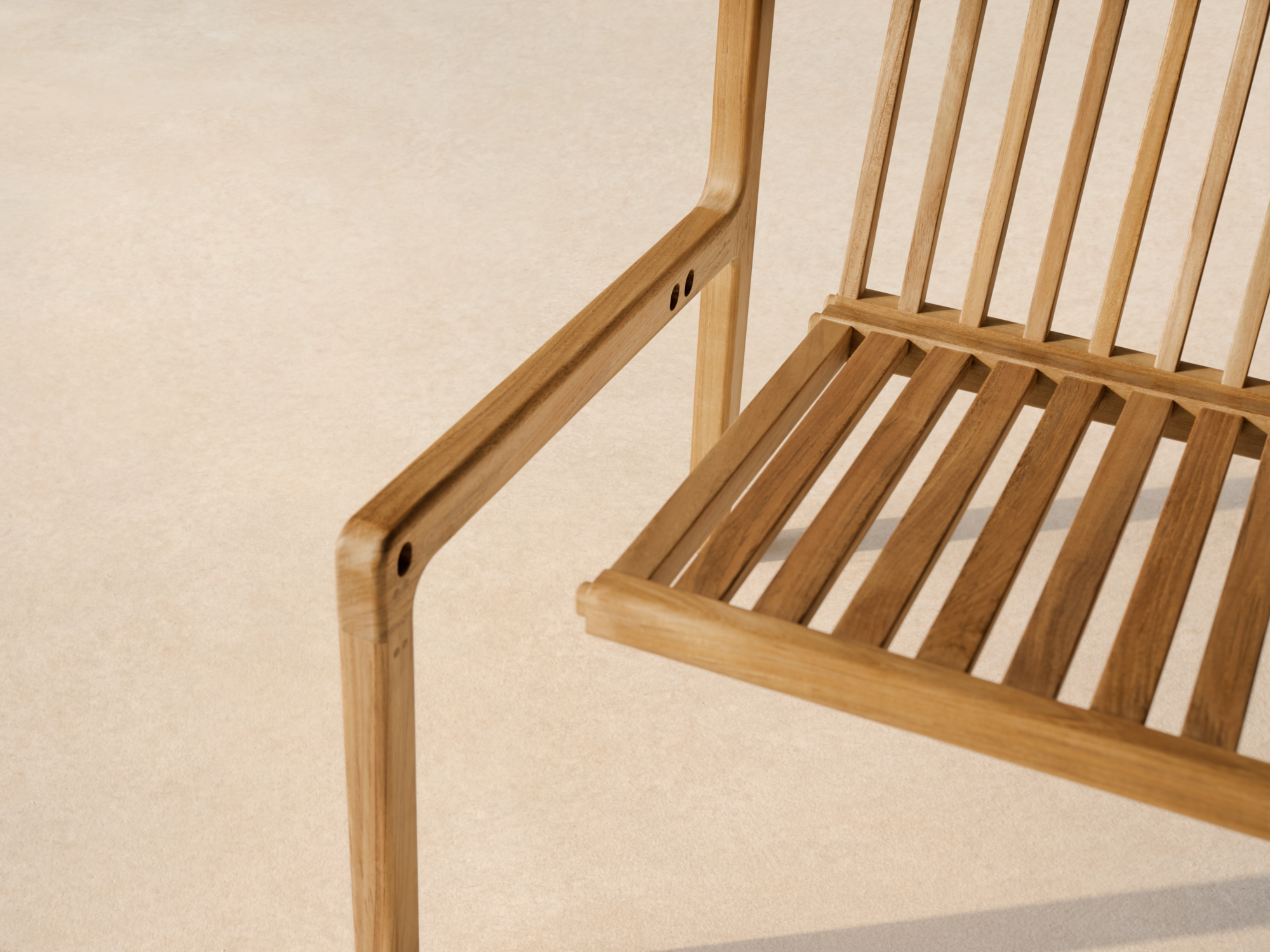 Materiaal | De stoel is vervaardigd uit massief hout, FSC™-gecertificeerd teak – een duurzame en natuurlijke houtsoort die zowel sterk als stijlvol is. |