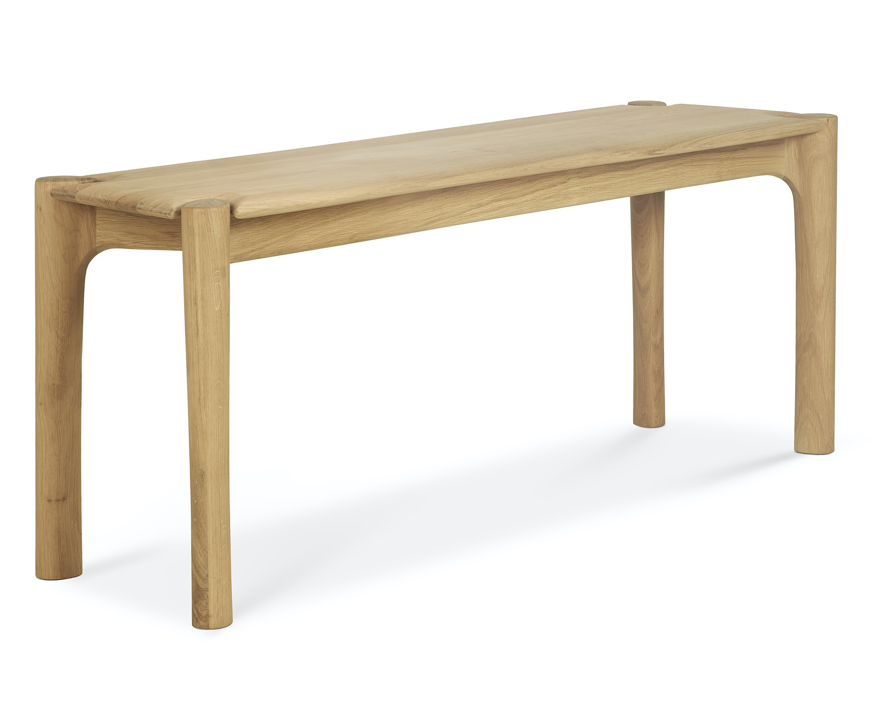 Met de Pi bank brengt Ethnicraft een ode aan de natuurlijke vormen van hout. De lijnen zijn vloeiend, de afwerking subtiel oneffen – precies zoals de natuur het bedoeld heeft. Elke bank wordt met de hand gepolijst om het unieke karakter van het eikenhout te bewaren. Of je hem nu combineert met de bijpassende Pi eettafel, of gebruikt als stijlvol accent in een hal, slaapkamer of zithoek: deze bank is een ingetogen blikvanger die zich overal thuis voelt.