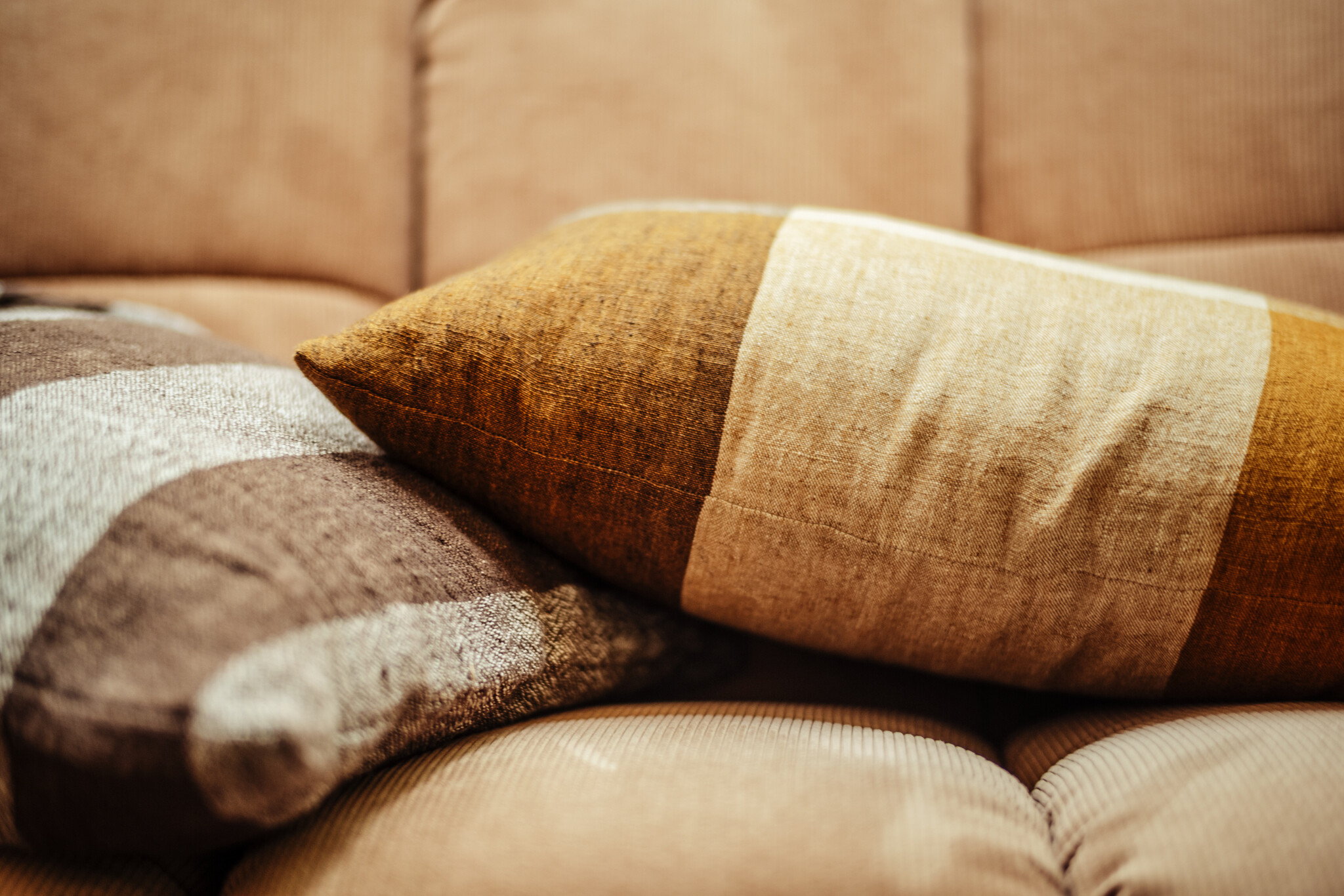 De warme kleuren en zachte 100% linnen bekleding geven elke zithoek een uitnodigend tintje.
