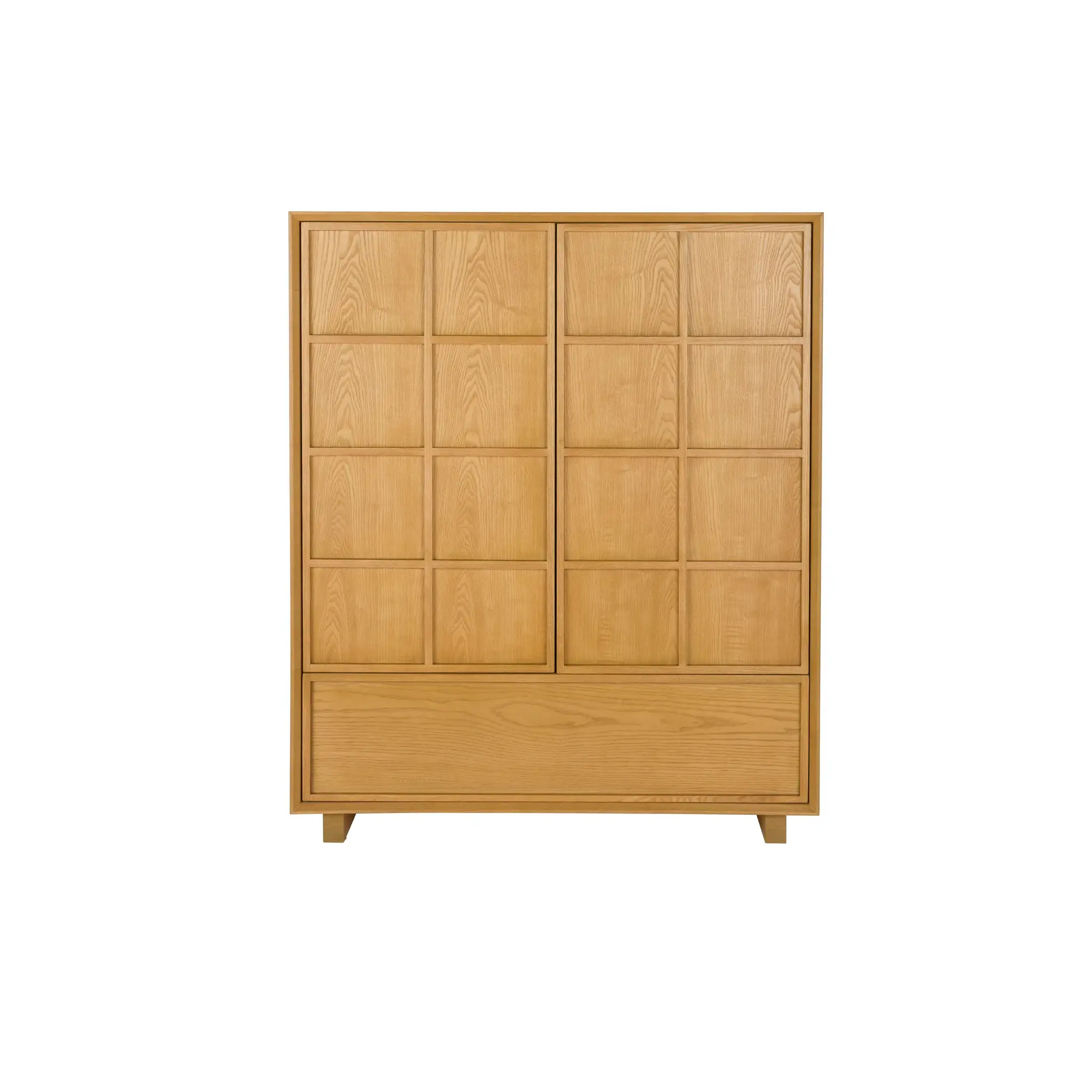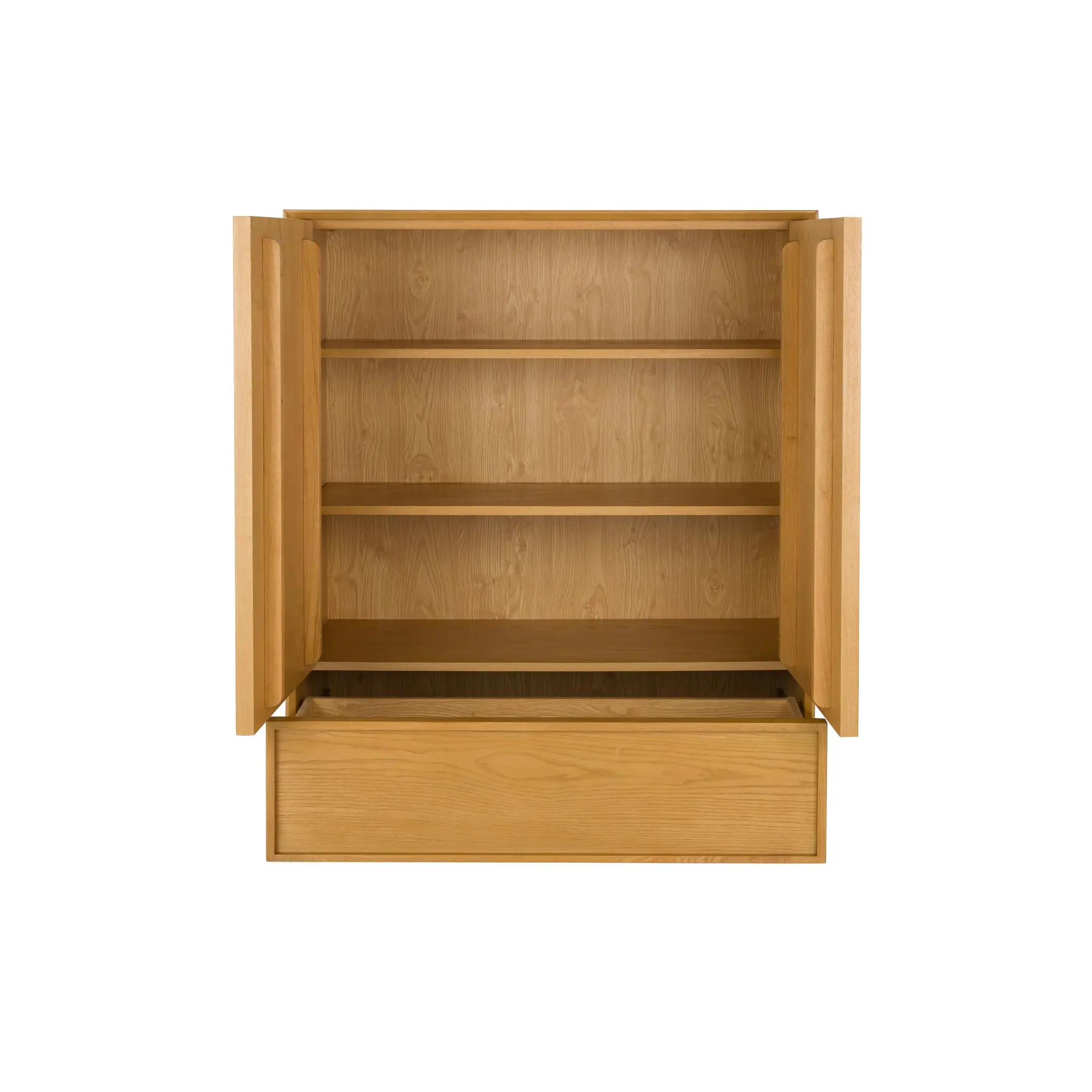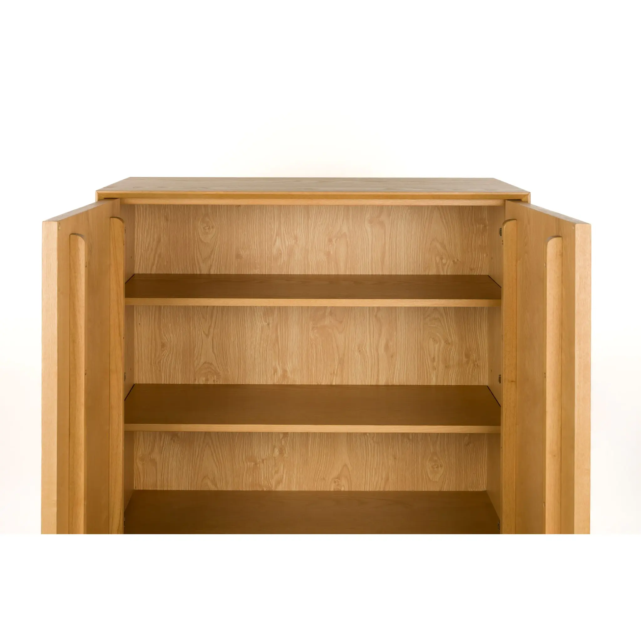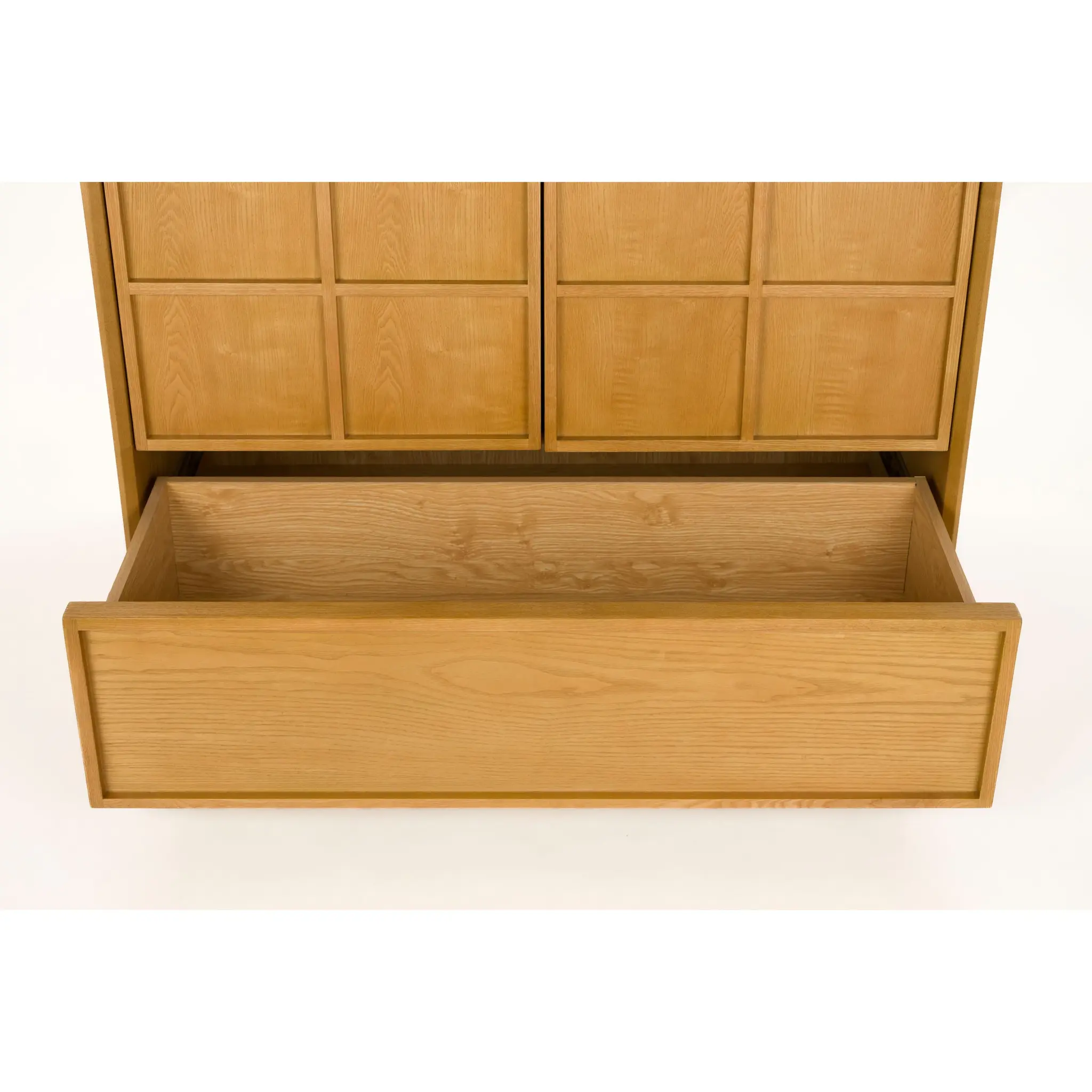 Het cabinet staat licht verhoogd op rechte pootjes, wat het meubel een luchtige uitstraling geeft en het losmaakt van de vloer. De combinatie van Japans vakmanschap en Scandinavische helderheid maakt dit cabinet tot een natuurlijke keuze voor een Japandi-interieur waar orde, eenvoud en rust centraal staan. Marie Kondō zou goedkeurend knikken.