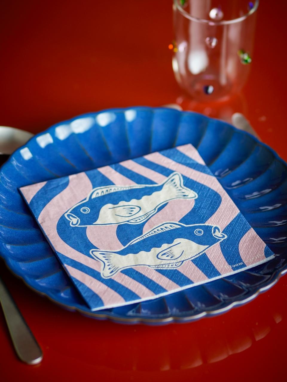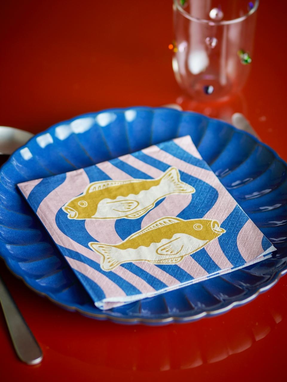 De Remy servetten van Bloomingville brengen een vrolijke, maritieme sfeer aan je tafel. Ze zijn gemaakt van FSC-gecertificeerd papier en bedrukt met een speels grafisch vismotief in frisse blauwtinten. Dankzij hun creatieve ontwerp en levendige kleuren zijn ze geschikt voor elke gelegenheid: van alledaagse maaltijden tot feestelijke diners.