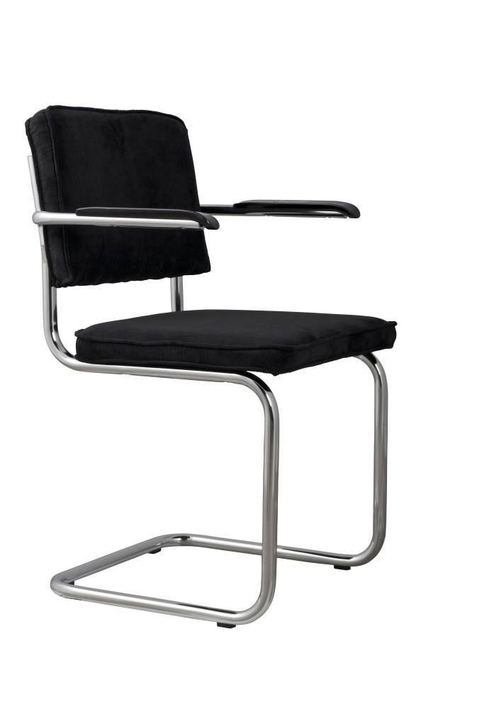 De zitting en rugsteun hebben een ribfluwelen stof met een 'pipingband' afwerking. De stof heeft een sterkte van meer dan 40.000 Martindale. Deze hoeveelheid Martindale wilt zeggen dat de stof gemaakt is voor intensief woongebruik en weinig tot geen slijtage zal vertonen. De armstoel is gemaakt uit een verchroomd frame met een armsteun uit bakkeliet. De zithoogte meet 48 cm.