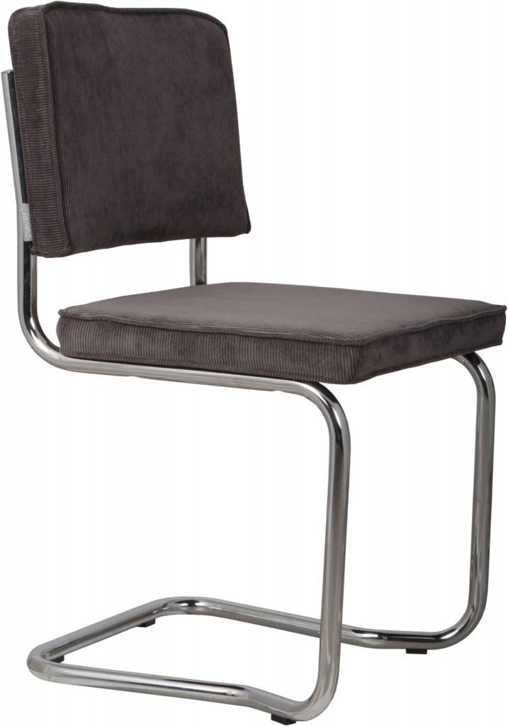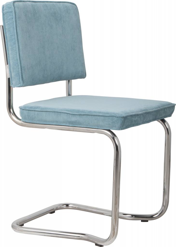 De zitting en rugsteun hebben een ribfluwelen stof met een 'pipingband' afwerking. De stof heeft een sterkte van meer dan 40.000 Martindale. Deze hoeveelheid Martindale betekent dat de stof gemaakt is voor intensief woongebruik en zal weinig tot geen slijtage vertonen. De stoel is gemaakt uit een verchroomd frame. Door de knik in het frame onderaan is de stoel ook perfect stapelbaar. De zithoogte meet 48 cm.