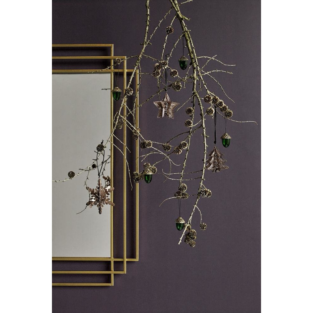 Deze aantrekkelijke wandspiegel toont ons boeiende, geometrische effecten die voortspruiten uit een eenvoudige overlapping van vierkanten en rechthoeken. De afwerking in goudkleur zorgt voor een weelderige touch en art deco-effect.