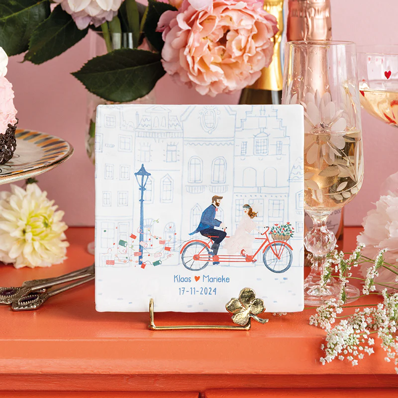 Het tegeltje It’s official! viert hét moment waarop twee mensen elkaar volmondig ‘ja’ zeggen. Een tegel vol liefde, geluk en symboliek – dé herinnering aan een dag die je nooit meer vergeet. Perfect als huwelijkscadeau, als blijvende herinnering aan je eigen bruiloft of als klein kunstwerkje aan de muur.