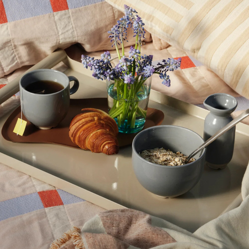 Think outside the box, een serveerblad kan evengoed gebruikt worden als deel van de tafelversiering.